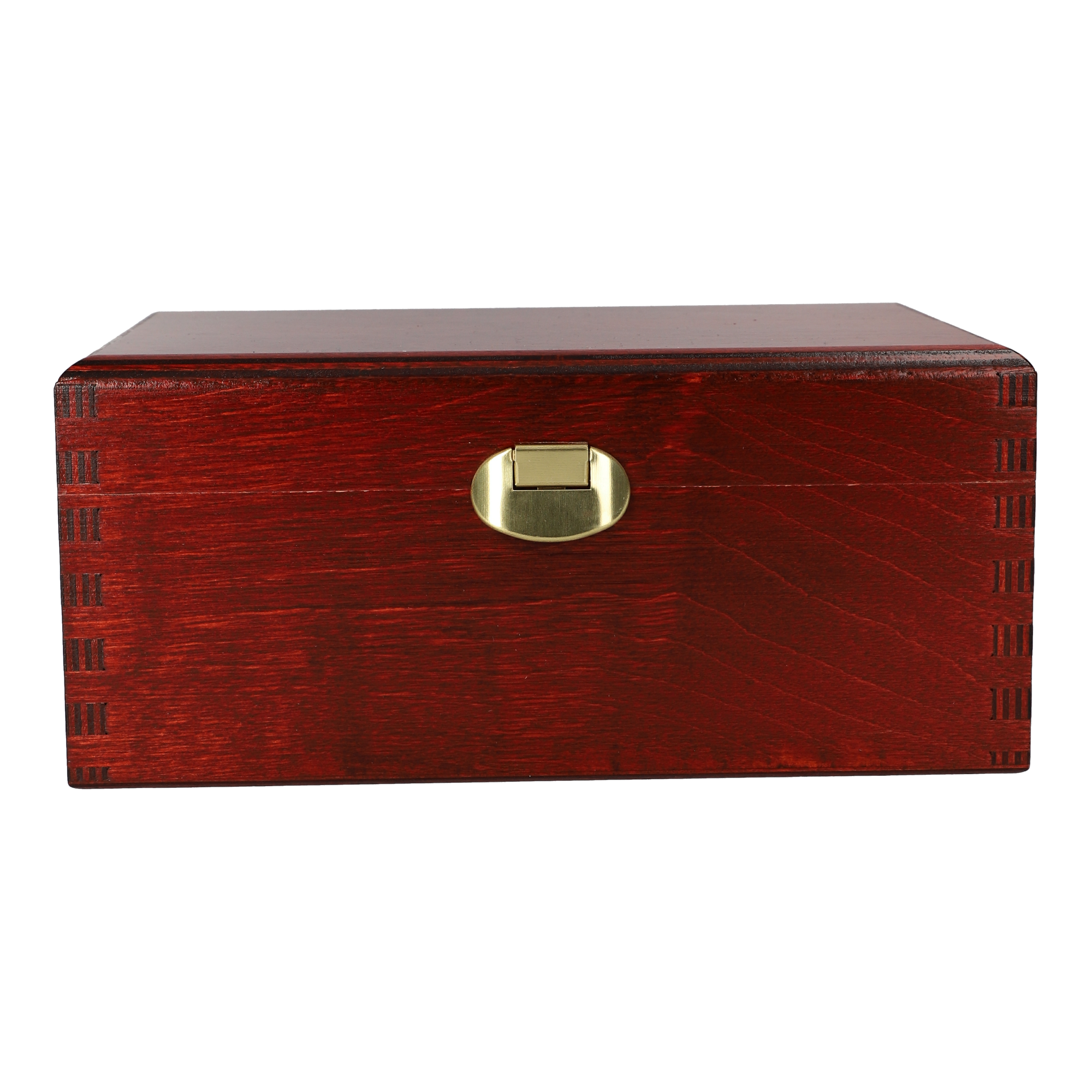 Maße des Holzkastens: L 205 mm, B 136 mm, H 93 mm