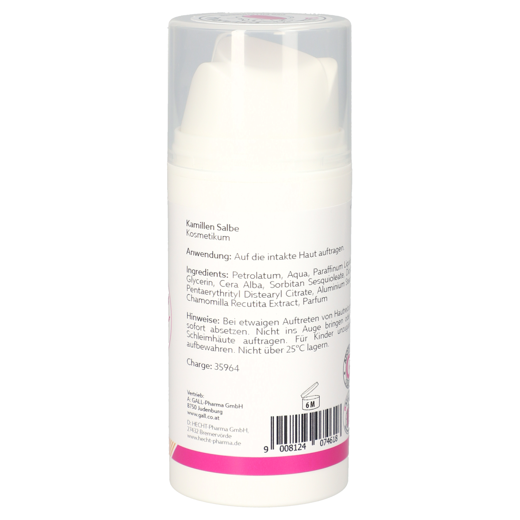 Kamillensalbe ist eine Wasser-in-Öl-Emulsionssalbe, mit einem Wassergehalt von ca. 30%. Der Hauptinhaltsstoff der Kamille, das Bisabolol hat hautberuhigende, sowie entzündungshemmende Eigenschaften. Durch die regelmäßige Anwendung dieser Pflege wird empfindliche Haut geschützt und zu Irritationen neigende Haut sichtlich reduziert. Die Pflege mit Kamille stellt die hauteigene Schutzbarriere wieder her und verhindert somit Rötungen und Irritationen.