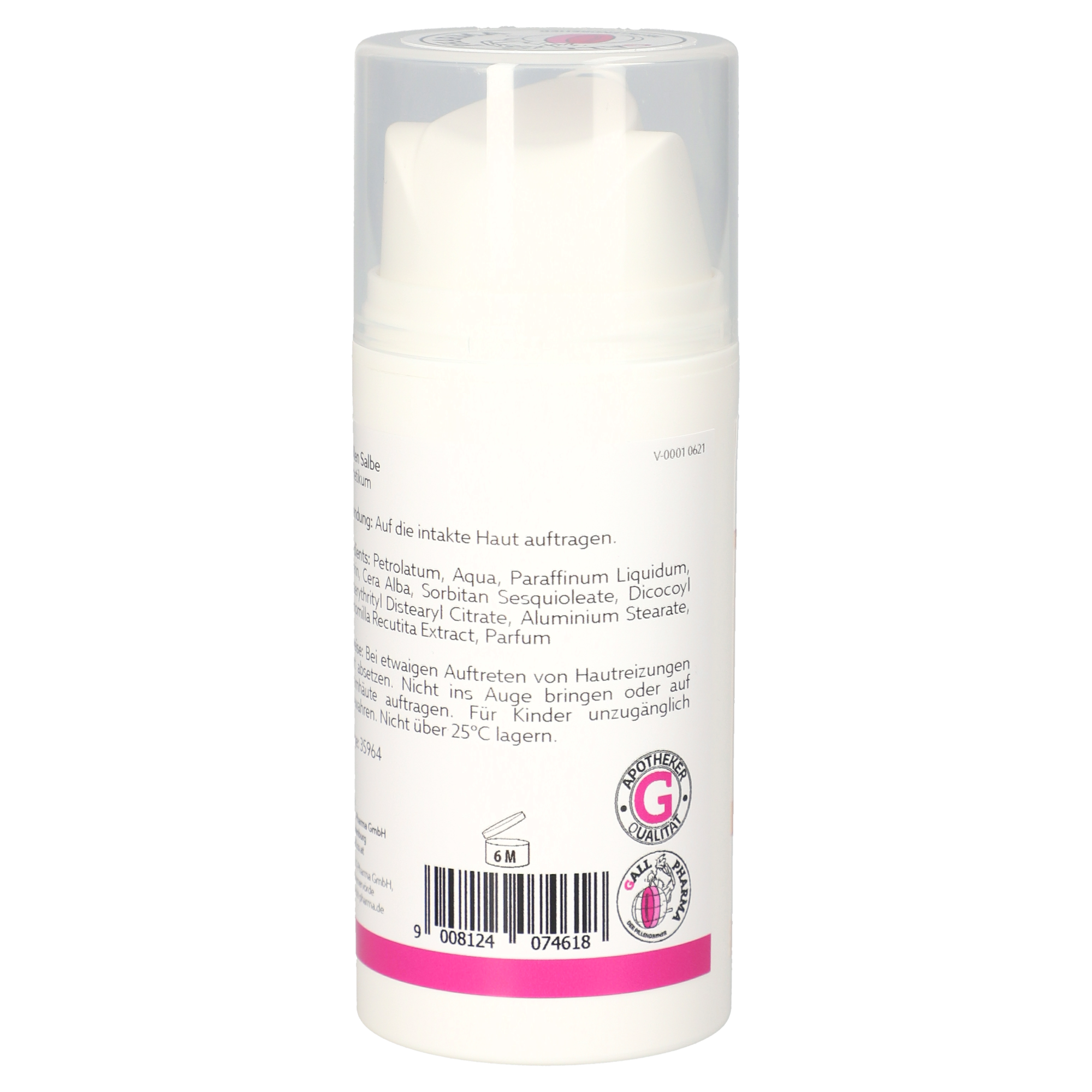 Chamomilla Recutita Water, Petrolatum, Paraffinum Liquidum, Lanolin, Simmondsia Chinensis Seed Oil (Jojoba Oil), Glycerin, Benzyl Alcohol, Cera Alba, Sorbitan Sesquioleate, Dicocoyl Pentaerythrityl Distearyl Citrate, Aluminum Stearates, Cera Flava, Chamomilla Recutita Flower Extract, Parfum, Chamomilla Recutita Oil, Linalool, Limonene, Eugenol