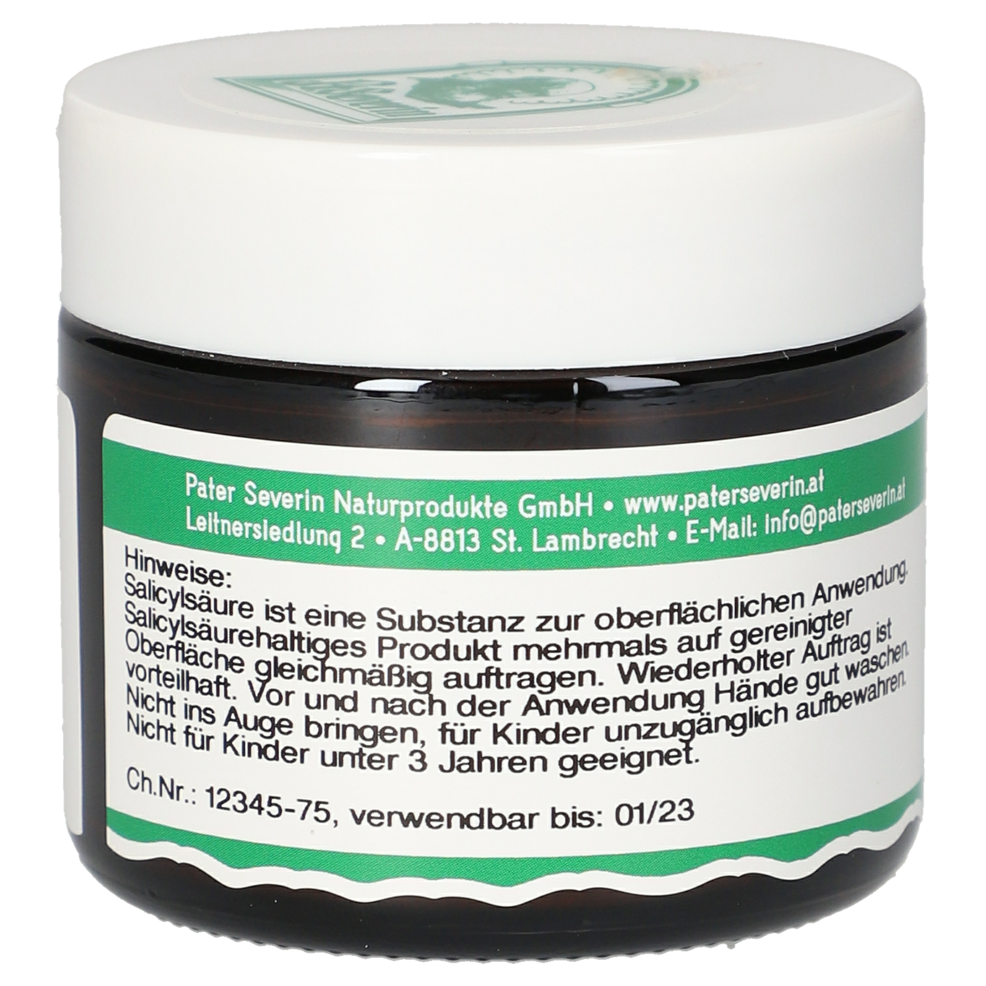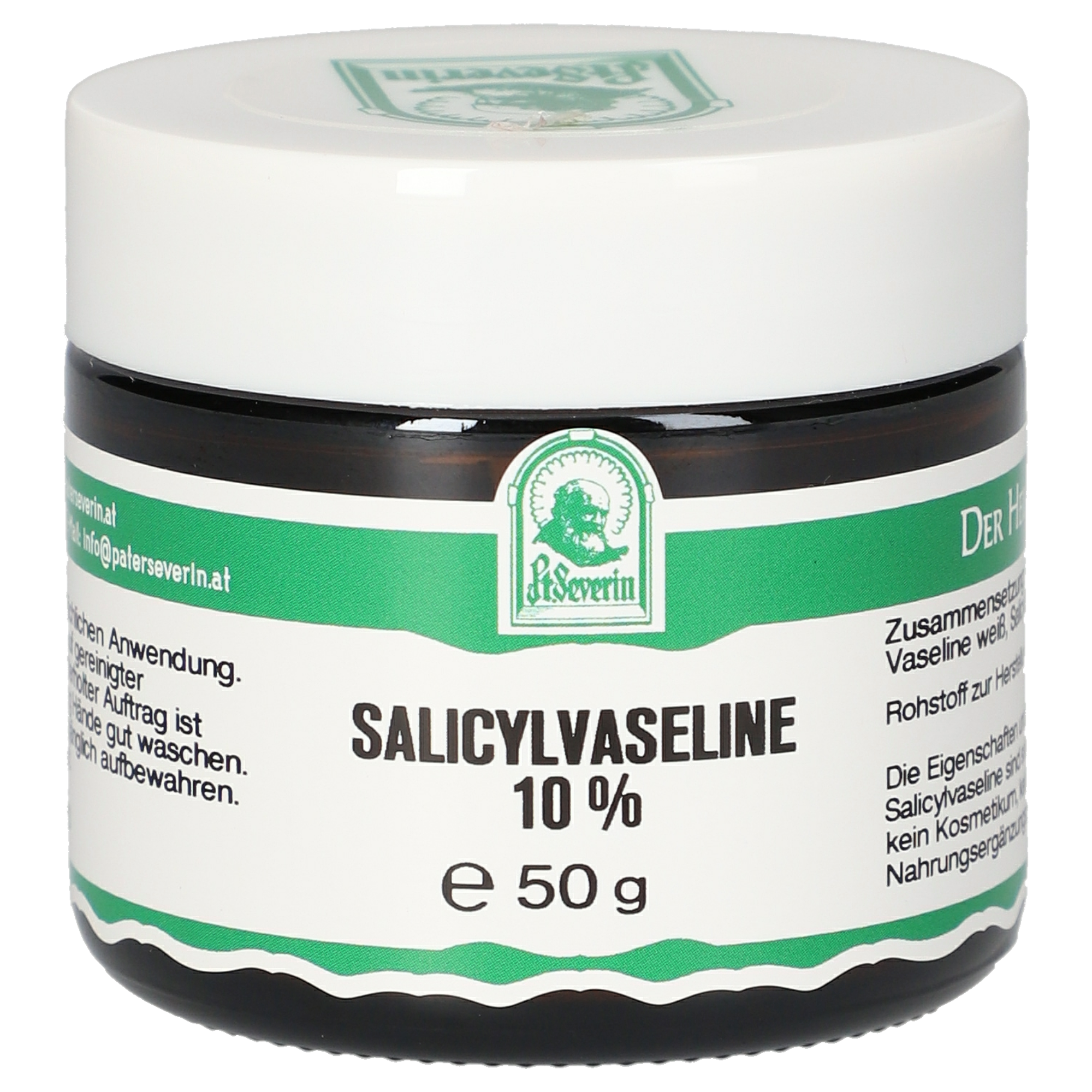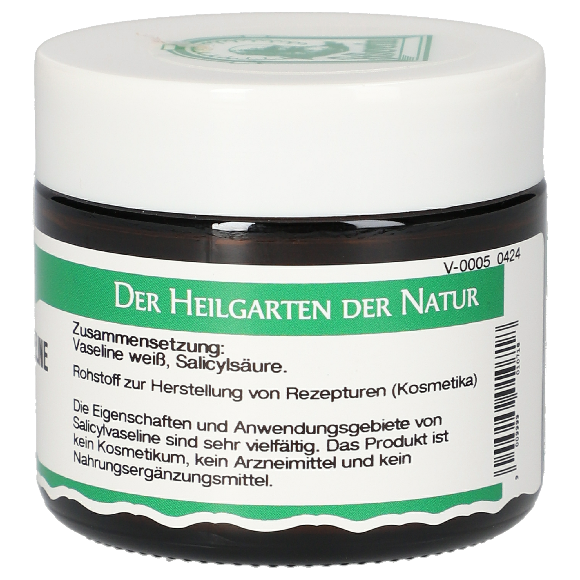 Salicylvaseline ist eine Salbe auf Vaselinebasis, welche den Wirkstoff Salicylsäure enthält. Sie hat hornhautauflösende, antibakterielle und antimykotische Eigenschaften. Durch die beschleunigte Abschuppung wird die Haut auch zu einer schnelleren Erneuerung angeregt. Anwendung findet die Salicylvaseline daher für die Behandlung von Hyperkeratosen, Akne, Schuppenflechte, Warzen und Hühneraugen. Die Salbe sollte ein- bis zweimal täglich kleinflächig aufgetragen werden.