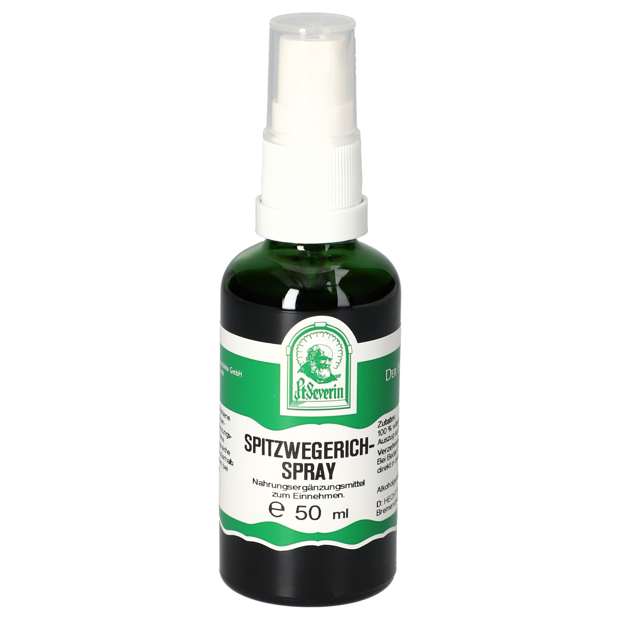 Spitzwegerich Spray enthält einen hochwertigen wässrig/alkoholischen Auszug aus Spitzwegerichblättern. Der Auszug wird nach Vorgaben des Arzneibuches im Verhältnis 5:1 hergestellt. Alkoholgehalt: 66 % Vol.