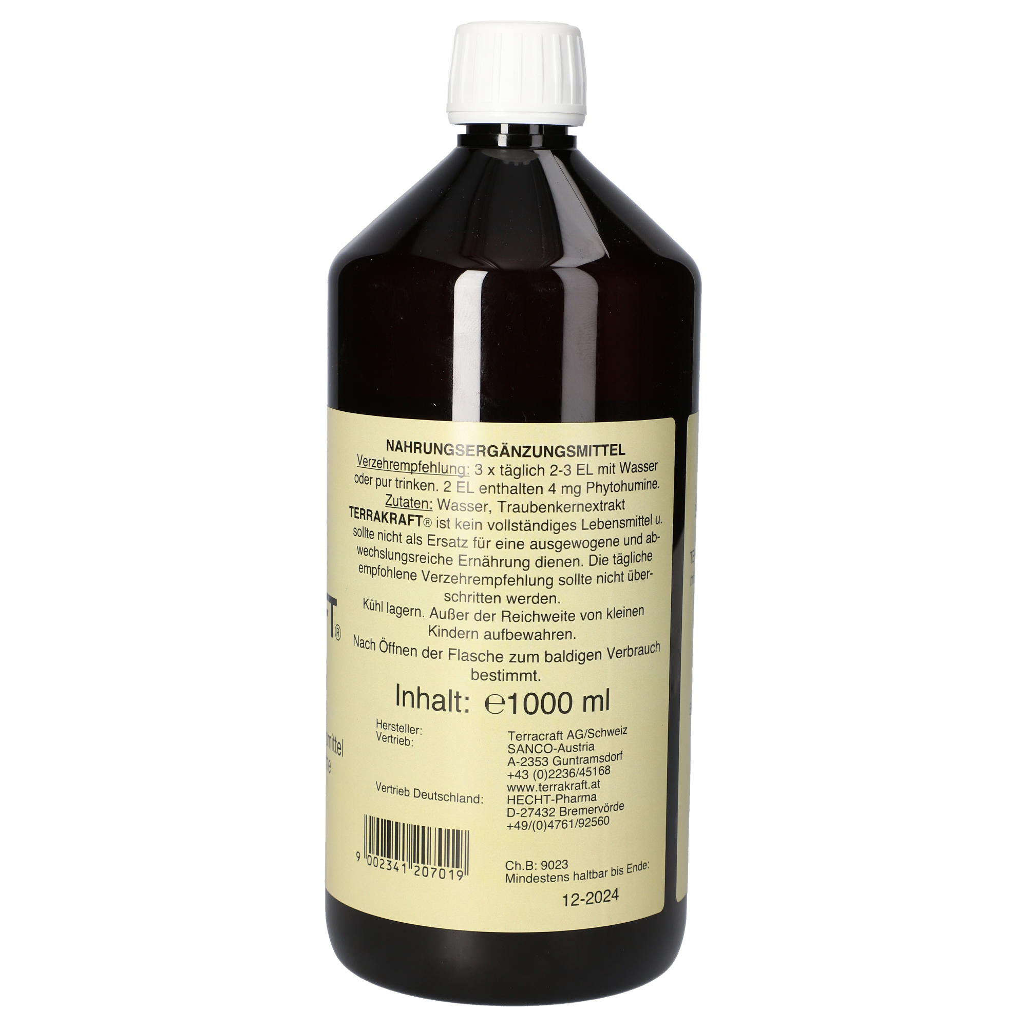 Terrakraft® ist kein vollständiges Lebensmittel und sollte nicht als Ersatz für eine ausgewogene und abwechslungsreiche Ernährung dienen. Die tägliche empfohlene Verzehrempfehlung sollte nicht überschritten werden. Nach dem Öffnen der Flasche zum baldigen Verbrauch bestimmt. Kühl lagern. Auch für Kinder geeignet. Alkohol- und zuckerfrei. Ohne Aroma-, Farb- und Geschmacksstoffe.