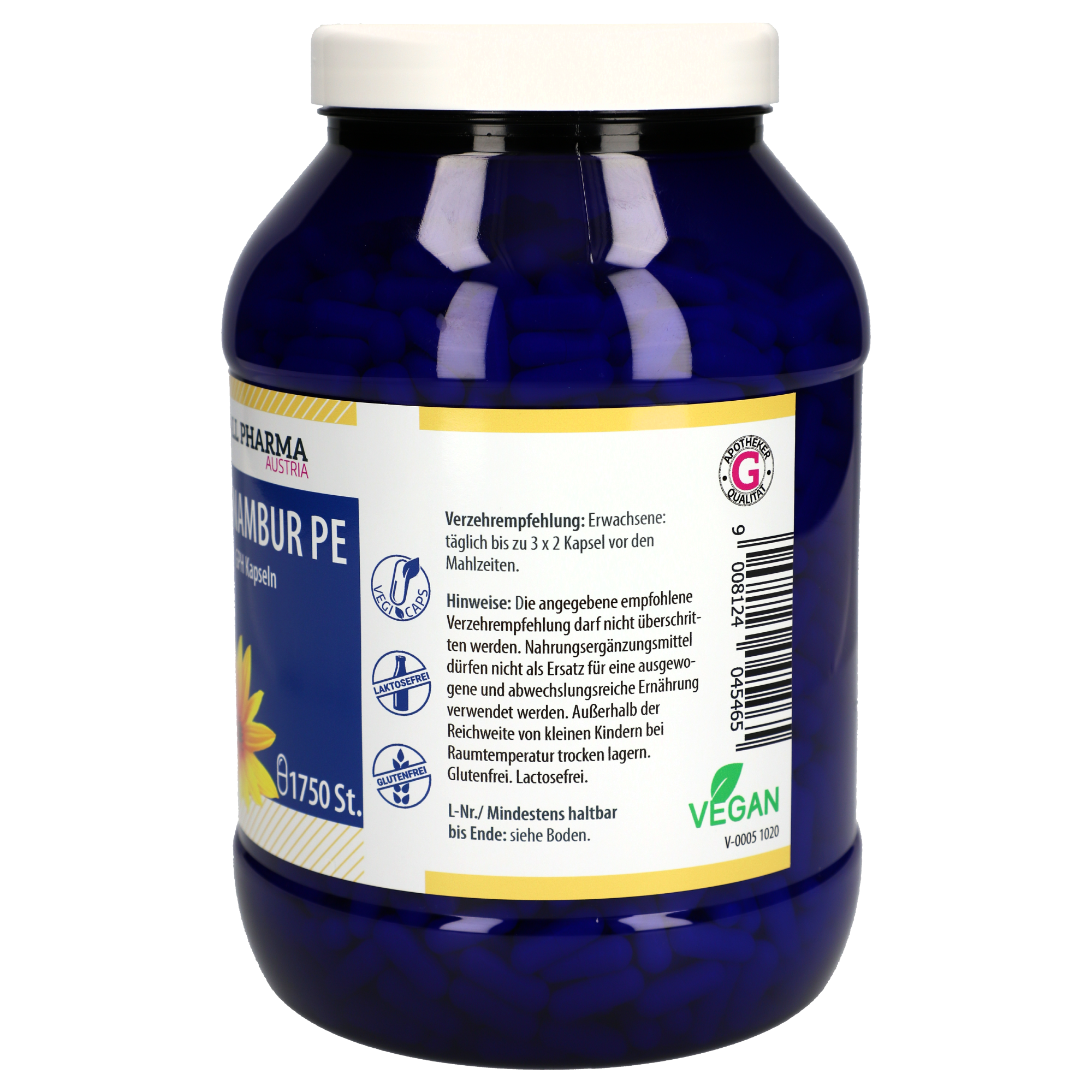| Packungsgrößen: | 60 Kapseln, 120 Kapseln, 180 Kapseln, 360 Kapseln, 750 Kapseln, 1750 Kapseln |