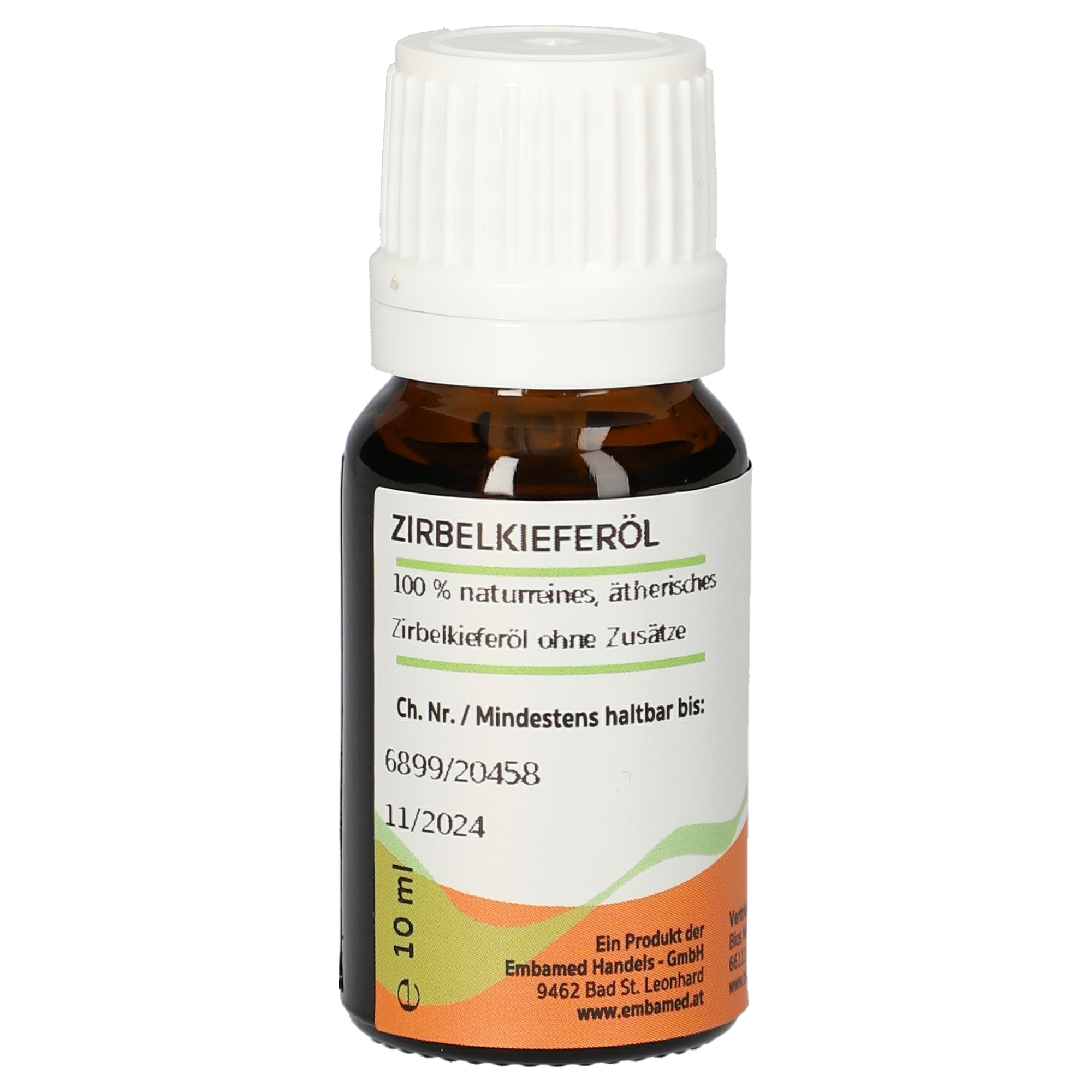 Zirbelkieferöl Embamed® wird durch Wasserdampfdestillation aus den Zweigen der Zirbelkiefer (Pinus cembra) gewonnen. Es wird in der Volksmedizin bei Muskel- und Erkältungsbeschwerden eingesetzt. Weiters dient es der Raumluftverbesserung.