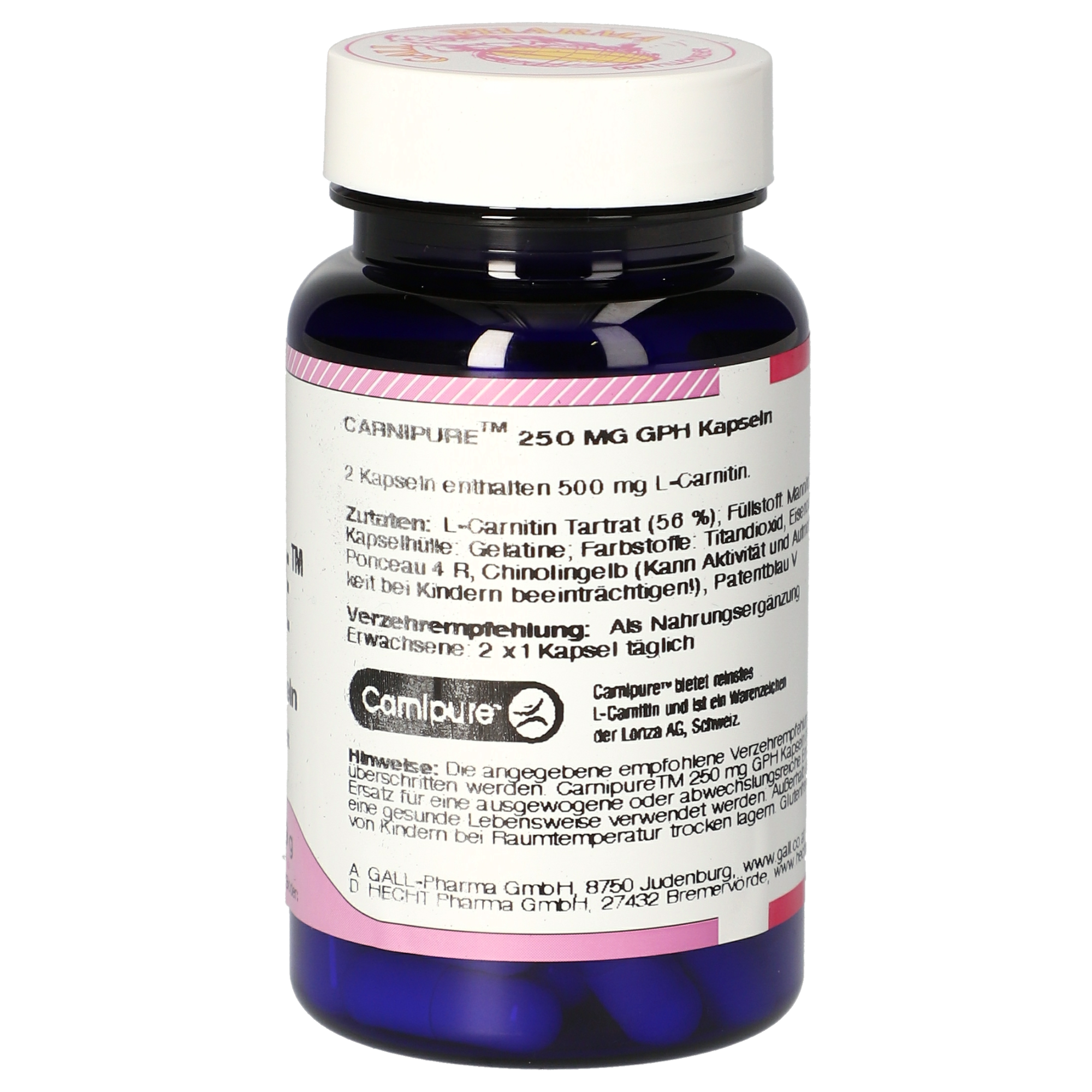 2 Kapseln enthalten 500 mg L-Carnitin (Carnipure™).
