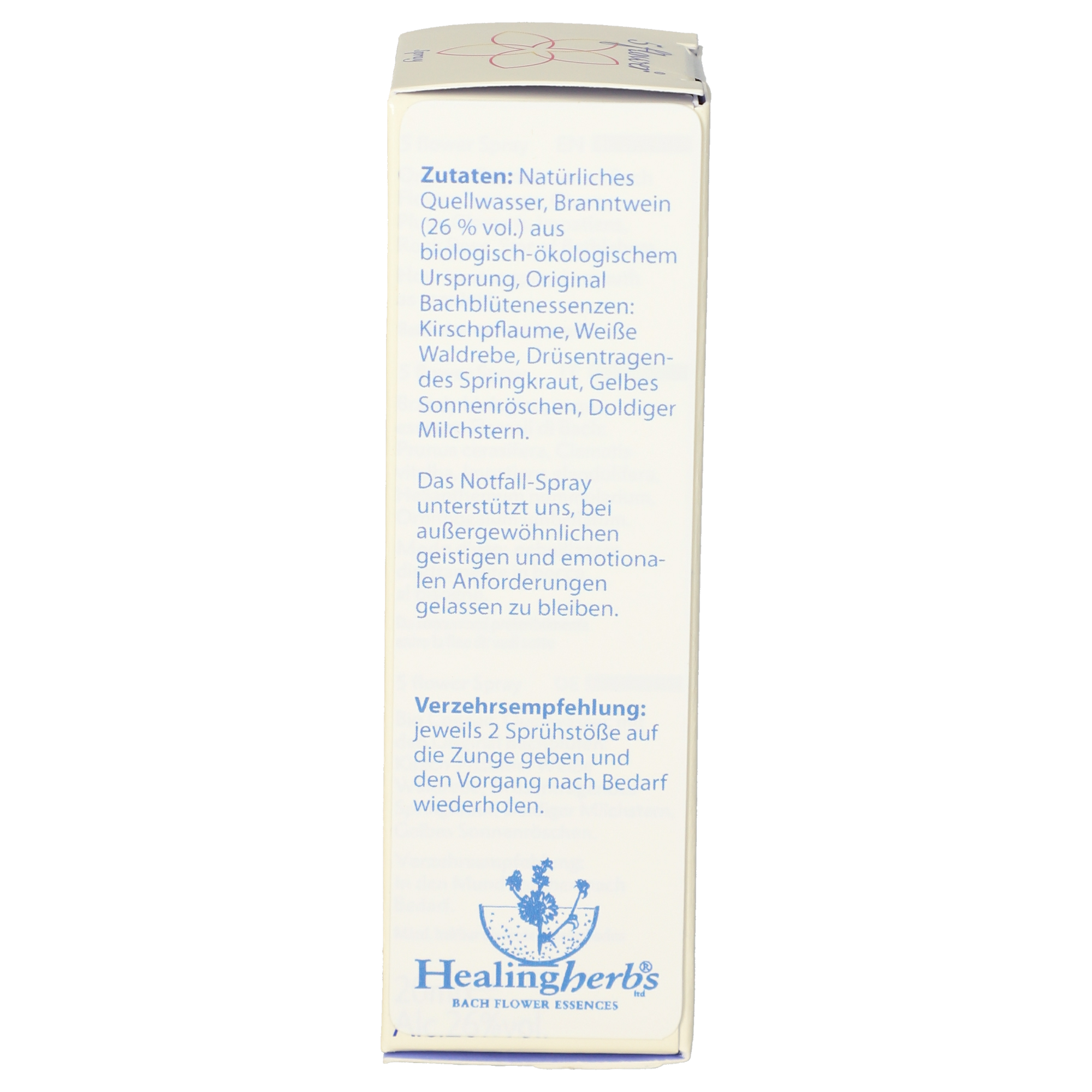 Geben Sie jeweils 2 Sprühstöße des Notfallsprays von Healing Herbs auf die Zunge und wiederholen Sie diesen Vorgang so oft, bis die Belastungsreaktion abklingt.