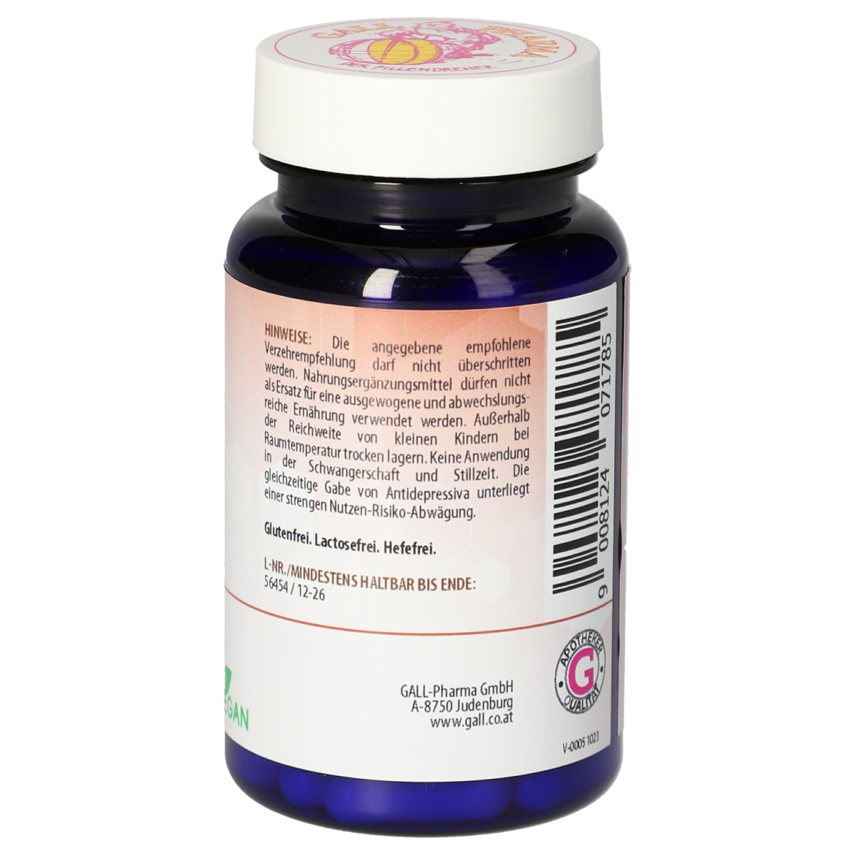 Die angegebene empfohlene Verzehrempfehlung darf nicht überschritten werden. Nahrungsergänzungsmittel dürfen nicht als Ersatz für eine ausgewogene und abwechslungsreiche Ernährung verwendet werden. Außerhalb der Reichweite von kleinen Kindern bei Raumtemperatur trocken lagern. Keine Anwendung in der Schwangerschaft und Stillzeit. Die gleichzeitige Gabe von Antidepressiva unterliegt einer strengen Nutzen-Risiko-Abwägung. Glutenfrei. Lactosefrei. Hefefrei.