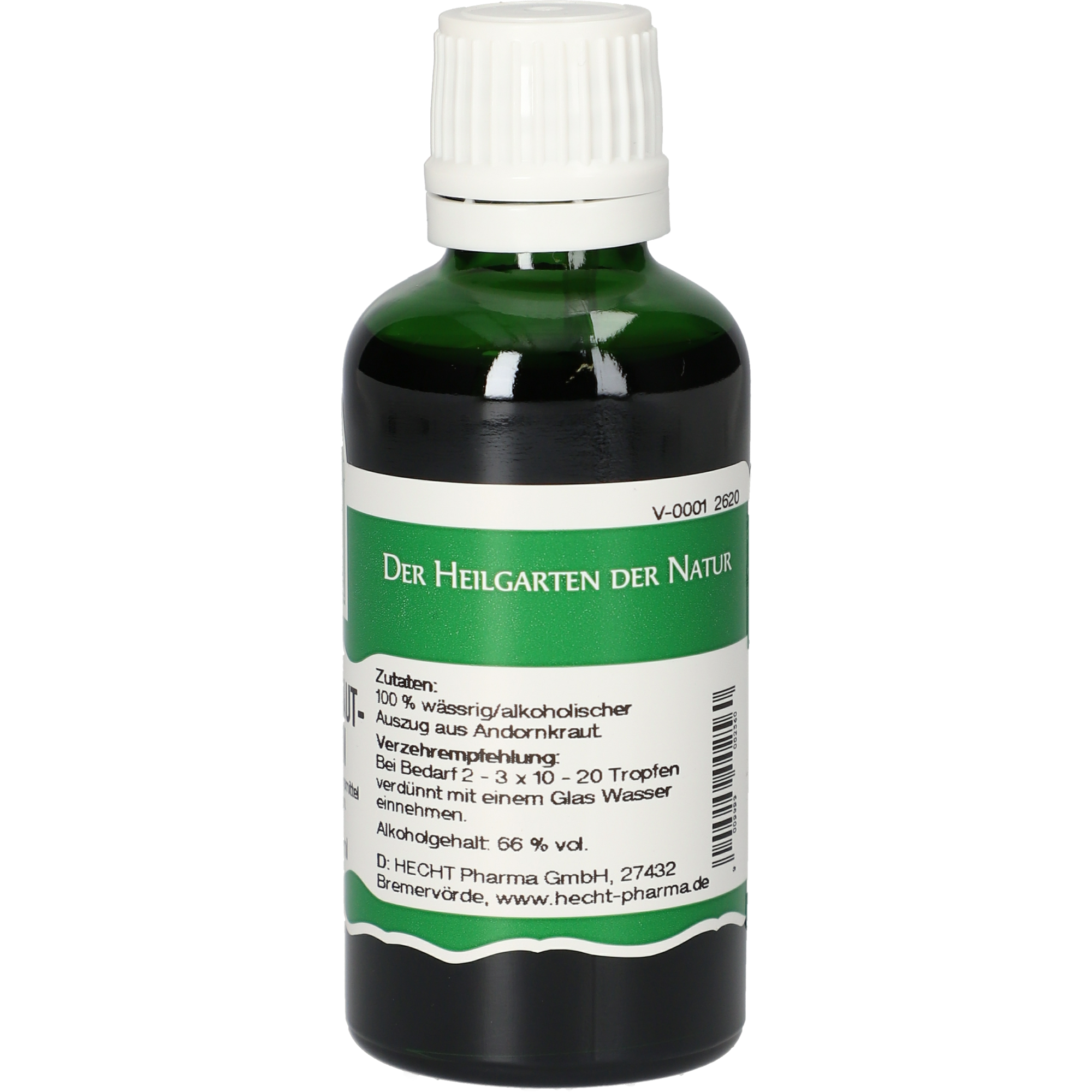 Andornkrauttropfen enthalten einen hochwertigen wässrig/alkoholischen Auszug aus Andornkraut. Der Auszug wird nach Vorgaben des Arzneibuches hergestellt. Alkoholgehalt: 66 % Vol.