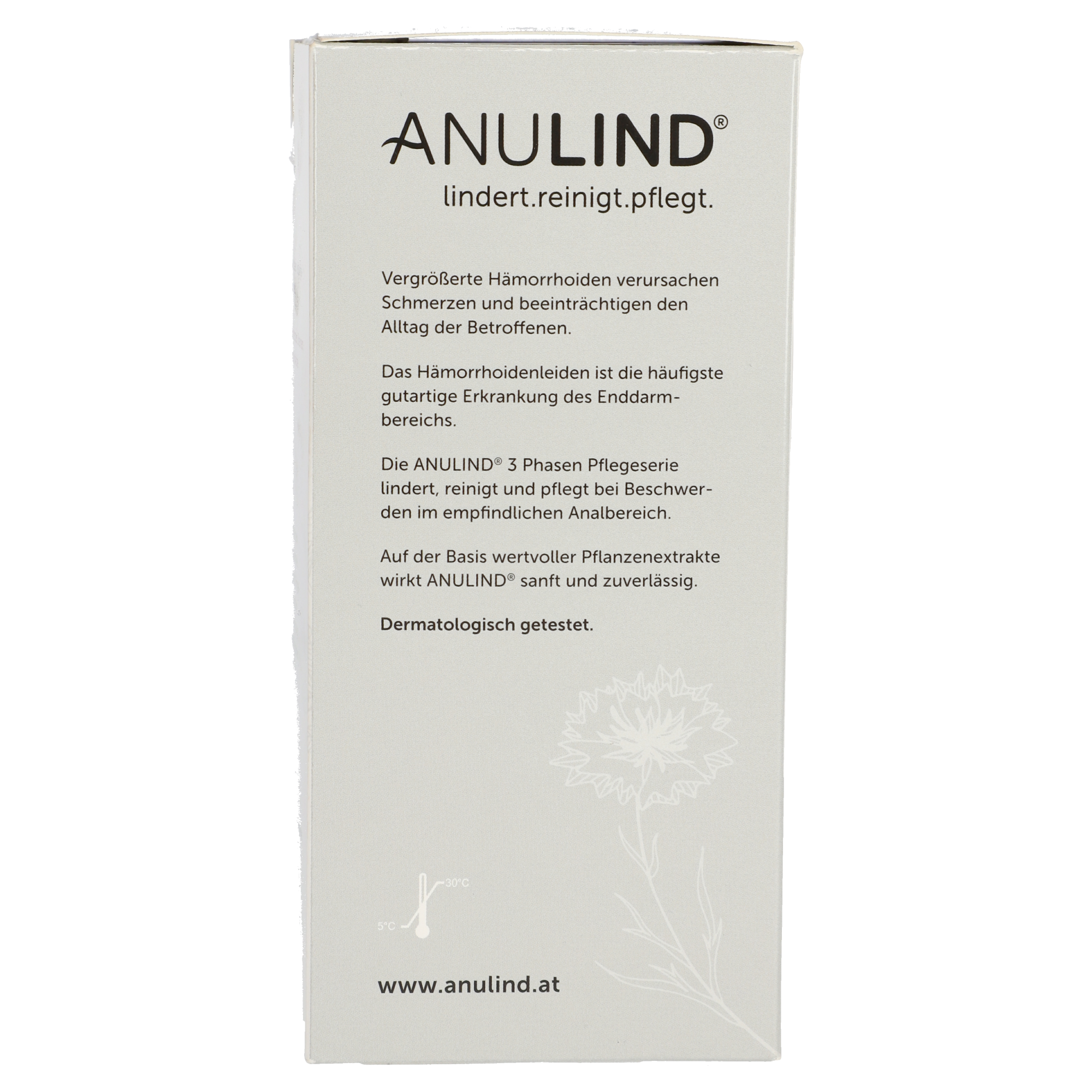 Die Anulind® Creme ist eine schützende Emulsion zur Linderung der Symptome bei Hämorrhoiden und Analbeschwerden. Hilft bei Schmerzen, Juckreiz und Brennen. Erzeugt einen Gleitfilm, der schützt und erfrischt. Der zarte, cremige Schaum ist die ideale Reinigung für den empfindlichen äußeren Analbereich und besonders auf die Anwendung bei schmerzenden Hämorrhoiden abgestimmt. Die milden Tücher sind ideal für die sanfte Reinigung zwischendurch und unterwegs geeignet, um die empfindliche Haut im Afterbereich zu pflegen und auf die Anwendung der Anulind® Creme vorzubereiten.
