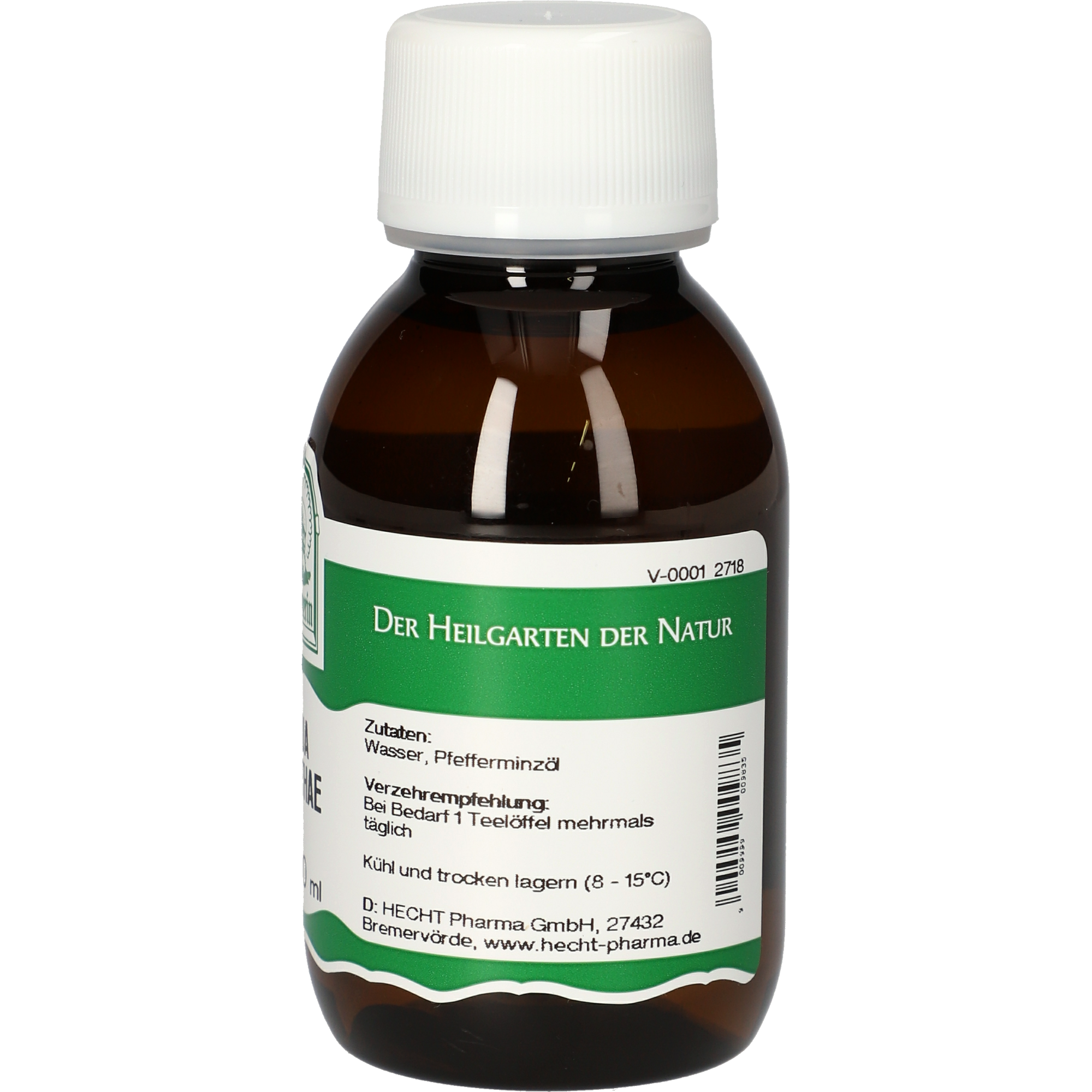 Wasser, Pfefferminzöl. Pfefferminzwasser enthält eine wässrige Lösung mit ätherischem Pfefferminzöl.