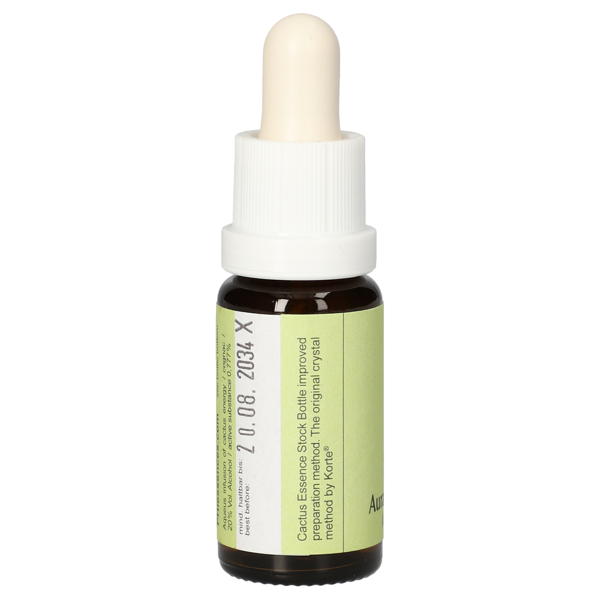 Korte PHI Essenzen, speziell entwickelt von Andreas Korte, nutzen eine Kristallmethode, um die Schwingungen von Blüten und Pflanzen direkt ins Wasser zu übertragen. Diese Essenzen sollen helfen, innere und äußere Harmonie wiederherzustellen, Selbstheilungsprozesse zu unterstützen und die Verbindung zu sich selbst, anderen Menschen, der Natur und Mitgeschöpfen zu stärken. Aura Cleansing Cactus (Silberkerze) Tropfen: PHI sind speziell formuliert, um den Schutz und die Reinigung der Aura auf der Astralebene zu unterstützen. Diese Tropfen eignen sich besonders für Menschen mit einem durchlässigen Energiefeld, die Schwierigkeiten haben, sich abzugrenzen. Körperlich: Harmonisiert durch die geistig-spirituelle „Hintertür“ körperliche Probleme, die durch Fremdenergien entstehen können, und bietet energetische „Putzhilfe“. Emotional: Belastungen wie unerklärliche Emotionen, Stimmungsschwankungen und Auseinandersetzungen mit Verstorbenen werden durch die Verwendung dieser Kakteenessenz erkannt und aufgelöst. Dadurch entsteht ein geschütztes emotionales Empfinden, das als Liebe an andere weitergegeben werden kann. Mental: Unterstützt die Klarheit und Selbstbestimmung von Gedankenstrukturen, indem sie Antriebsschwäche, Konzentrationsprobleme und Gedächtnisschwäche harmonisiert. Spirituell: Hilft dabei, die Aura von Fremdenergien zu befreien, insbesondere in Situationen, in denen man sich von starken Persönlichkeiten vereinnahmt fühlt, oder nach Todesfällen. Sie unterstützt den Prozess der Ablösung, um die Aura von allen Arten von Fremdenergien zu reinigen und zu befreien. Anwendung: Die Einnahmeflasche: Geben Sie vier bis sieben Tropfen aus jeder von Ihnen gewählten Vorratsflasche in ein mit stillem Mineralwasser gefülltes 30 ml Fläschchen. Zur besseren Haltbarkeit können Sie das Fläschchen zu 50% mit Wasser füllen und mit 45%igem Alkohol auffüllen. Wenn nicht anders verordnet, nimmt man vier Mal täglich vier Tropfen ein. Essenzen können auch äußerlich angewandt werden, indem man sie Lotionen oder Salben beimischt oder sie ins Badewasser gibt, was besonders effektiv ist. Zusammensetzung: 50% französischer Brandy zur Konservierung. Der Brandy reifte mindestens 4 Jahre in Eichenfässern. 50% energetisiertes stilles Wasser (Black Forest), Aura Cleansing Cactus Essence. Hinweise: Alkoholgehalt: 20% Vol. Kühl lagern. Außerhalb der Reichweite von Kindern aufbewahren. Rechtlicher Hinweis: Essenzen und Schwingungsmittel sind im Sinne des Art. 2 der VO (EG) Nr. 178/2002 Lebensmittel und haben keine direkte, nach klassisch wissenschaftlichen Maßstäben nachgewiesene Wirkung auf Körper oder Psyche. Alle Aussagen beziehen sich ausschließlich auf energetische Aspekte wie Aura, Meridiane, Chakren etc.