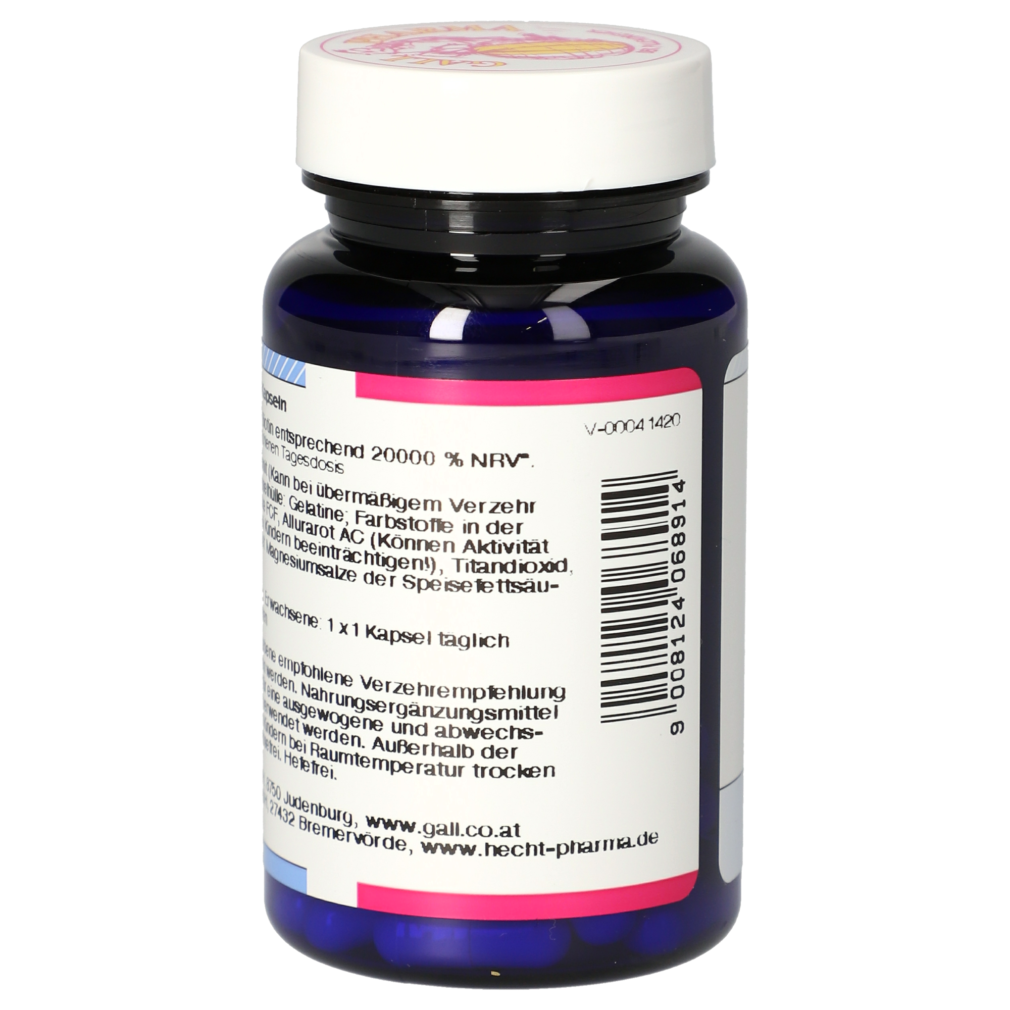 Lithium kommt in der Erdkruste etwas seltener als Zink, jedoch häufiger als Kobalt, Zinn und Blei vor. Lithiumsalze kommen verbreitet auch in Salzlaugen, meist Salzseen aber auch in Mineralwässern vor. Die Konzentration kann bis zu einem Prozent betragen. Der Altersforscher Michael Ristow zeigte 2011 einen möglichen Zusammenhang zwischen dem Gehalt an Lithium in der Umwelt und der Lebenserwartung des Menschen. Eine Studie, die 1990 in den USA veröffentlicht wurde, beschreibt eine erhebliche Verringerung von Straftaten und Suiziden in Regionen mit erhöhten Lithiumkonzentrationen im Trinkwasser. Eine österreichische Studie kam zu ähnlichen Ergebnissen. Lithium kommt auch sehr häufig in Mineralwässern vor. Aufgrund der zahlreichen Effekte auf die menschliche Gesundheit wird diskutiert, ob Lithium womöglich ein essentielles Spurenelement sein könnte. Die Eigenschaften und Anwendungsgebiete von Lithium sind sehr vielfältig. In der Europäischen Union ist das Produkt kein Nahrungsergänzungsmittel und kein Lebensmittel. Aufgrund von EU-Recht dürfen wir weiters zu diesem Produkt keinerlei Aussagen tätigen. Daher bitten wir Sie, sich auf entsprechenden Fachseiten im Internet oder durch fachspezifische Literatur über Lithium bzw. die unterschiedlichen Lithiumsalze und dessen Anwendungsmöglichkeiten zu informieren. Außerhalb der Europäischen Union gelten völlig andere rechtliche Rahmenbedingungen und dürfen Verbraucher über Produkte umfassend informiert werden. Wir bedauern die gegebenen Rahmenbedingungen innerhalb der Europäischen Union. Anwendungsempfehlung: Die Eigenschaften und Anwendungsgebiete von Lithium sind sehr vielfältig. Das Produkt ist in der Europäischen Union kein Nahrungsergänzungsmittel/Lebensmittel. Inhalt: 1 Stück enthält 130 mg Lithiumorotat Monohydrat entsprechend 5 mg Lithium. Lithiumorotat Monohydrat; Gelatine; Füllstoff: Mannit; Trennmittel: Magnesiumsalze der Speisefettsäuren