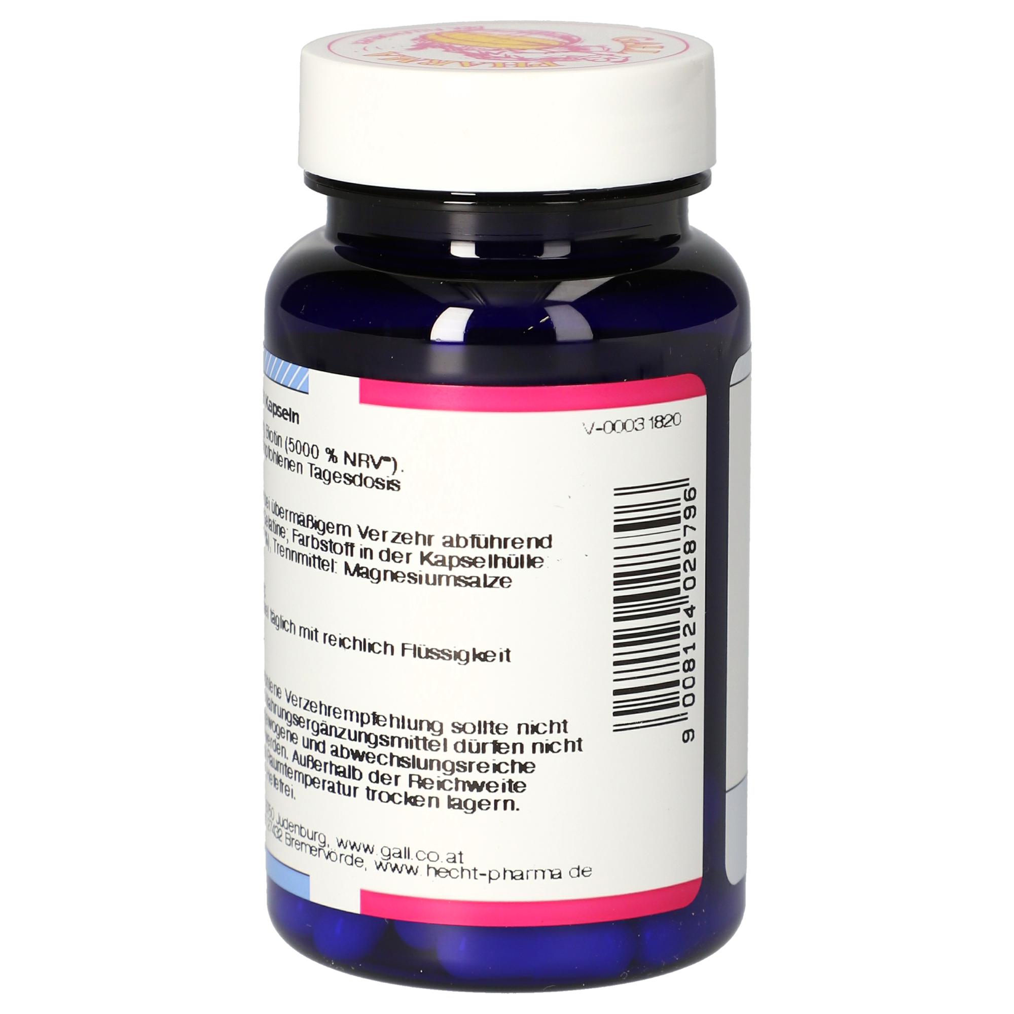 1 Kapsel enthält 2,5 mg Biotin (5000 % NRV*).