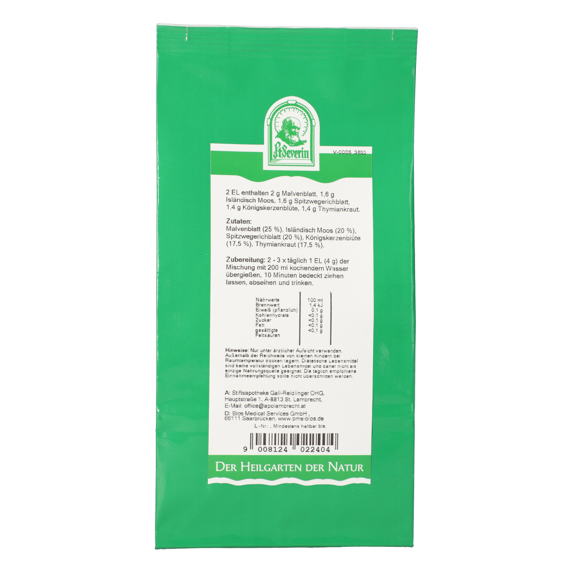 Malvenblatt, Spitzwegerichblatt, Königskerzenblüte, Thymiankraut und Isländisches Moos.