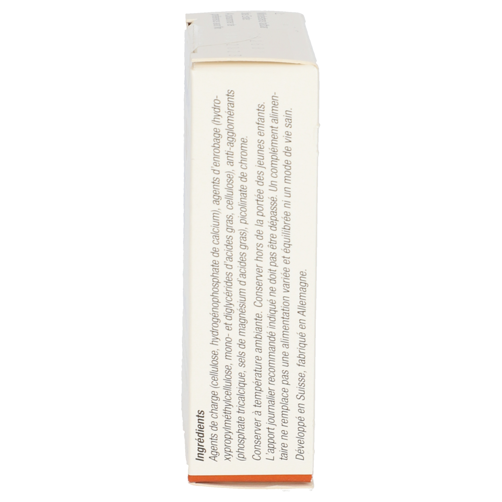 Füllstoffe (Cellulose, Calciumhydrogenphosphat), Überzugsmittel (Hydroxypropylmethylcellulose, Mono- und Diglyceride von Speisefettsäuren, Cellulose), Trennmittel (Tricalciumphosphat, Magnesiumsalze der Speisefettsäuren), Chrompicolinat.