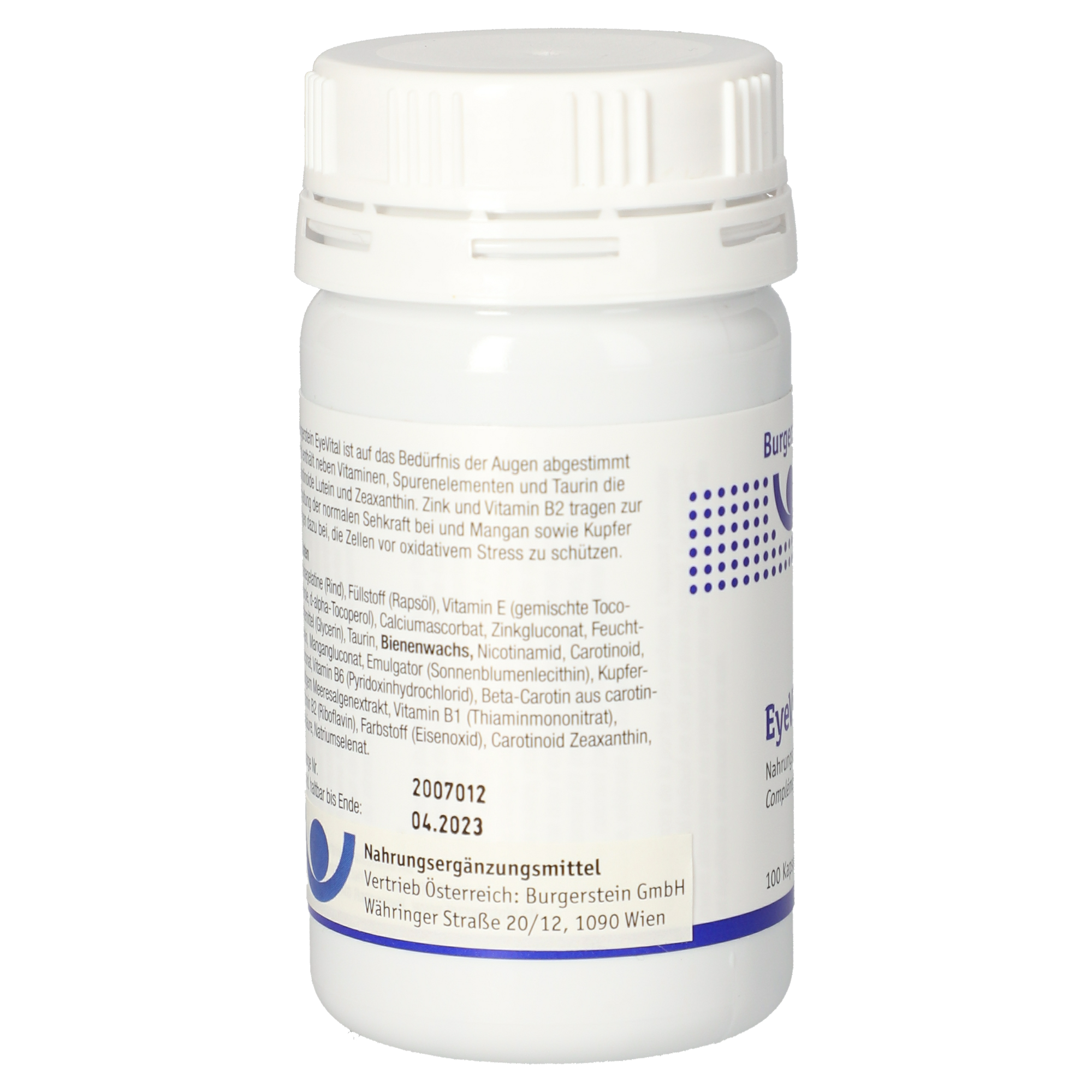Burgerstein Eye Vital ist speziell auf die Bedürfnisse der Augen abgestimmt und enthält neben Vitaminen, Spurenelementen und Taurin die Carotinoide Lutein und Zeaxanthin. Unsere Augen sind täglich zahlreichen externen Einflüssen ausgesetzt, was sie beansprucht und anstrengt. Zudem verschlechtert sich das Sehvermögen naturgemäß mit dem Alter. Augenvitamine – ein Begriff, der Vitamine, Mineralien, Spurenelemente, Enzyme und Aminosäuren umfasst – unterstützen das Auge dabei, sich besser gegen tägliche Belastungen zu schützen und bereits entstandene Mängel auszugleichen.