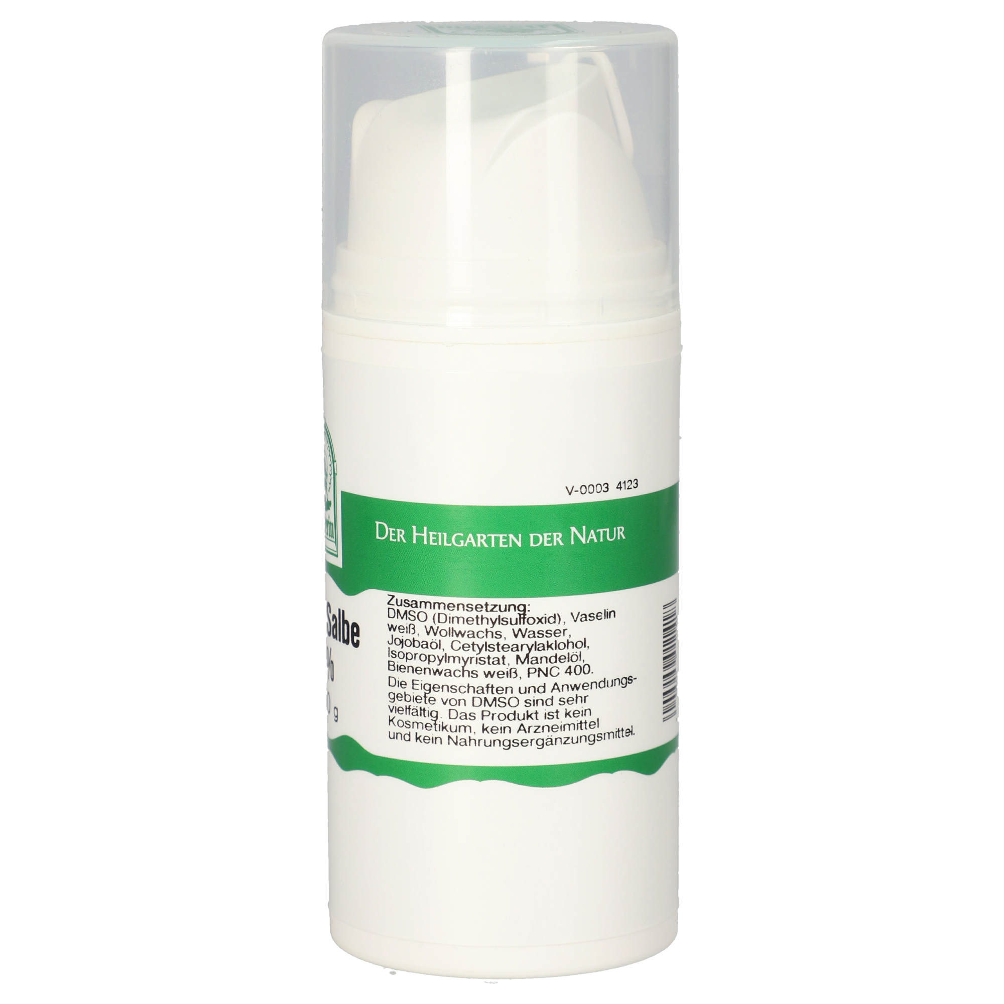 DMSO (Dimethylsulfoxid), Vaselin weiß, Wollwachs, Wasser, Jojobaöl, Cetylstearylalkohol, Isopropylmyristat, Mandelöl, Bienenwachs weiß, PNC 400.