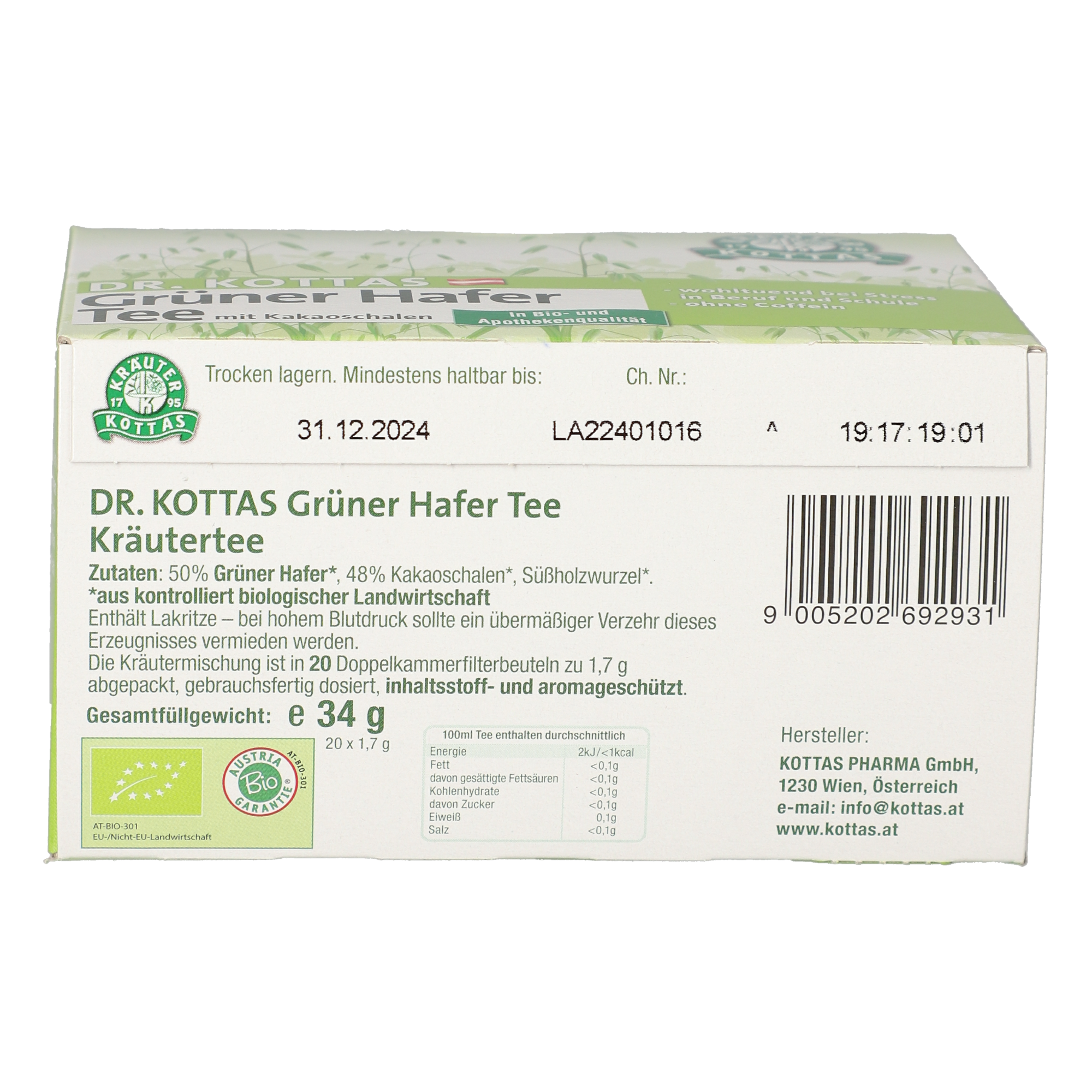 Produktinformationen "Dr. Kottas Grüner Hafertee mit Kakaoschalen"