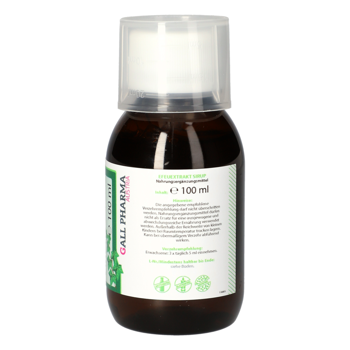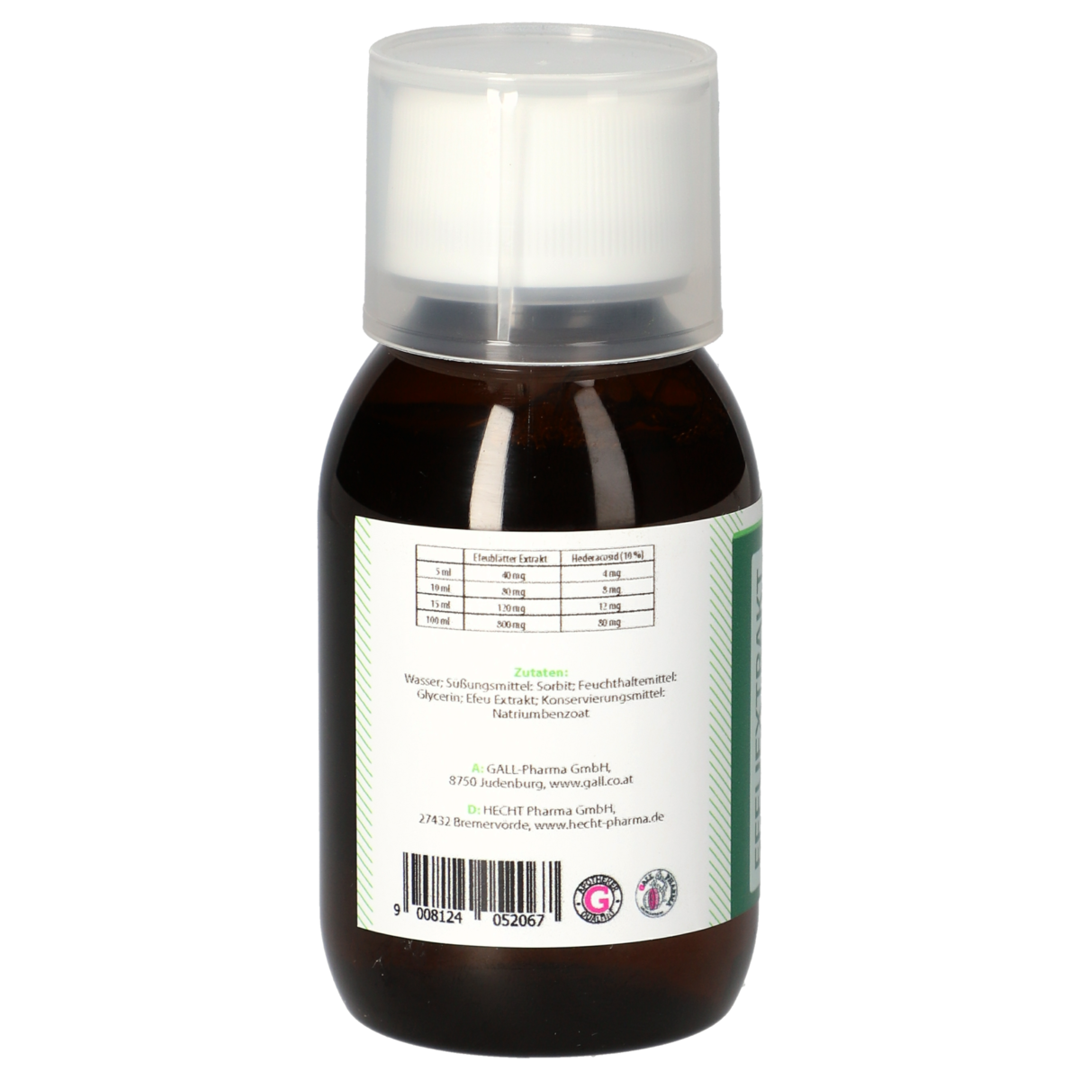 10 ml enthalten 80 mg Efeublätter Extrakt (8 mg Hederacosid), 15 ml enthalten 120 mg (12 mg Hederacosid), 100 ml enthalten 800 mg (80 mg Hederacosid).