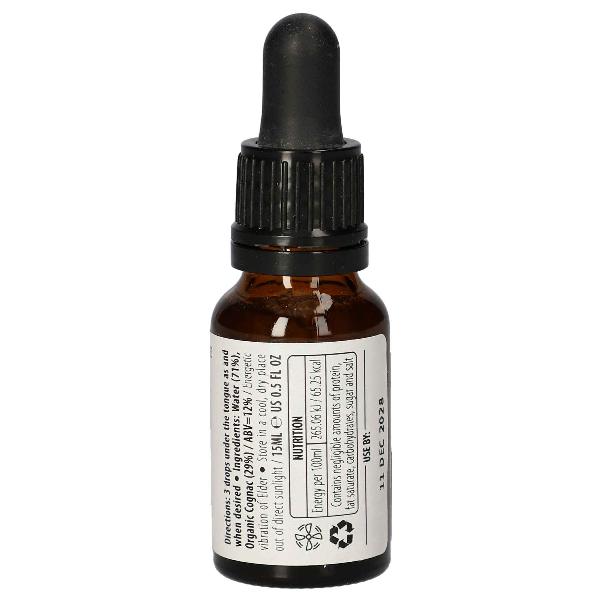 Wässriger Pflanzenextrakt Elder, gereinigtes Wasser, Brandy.