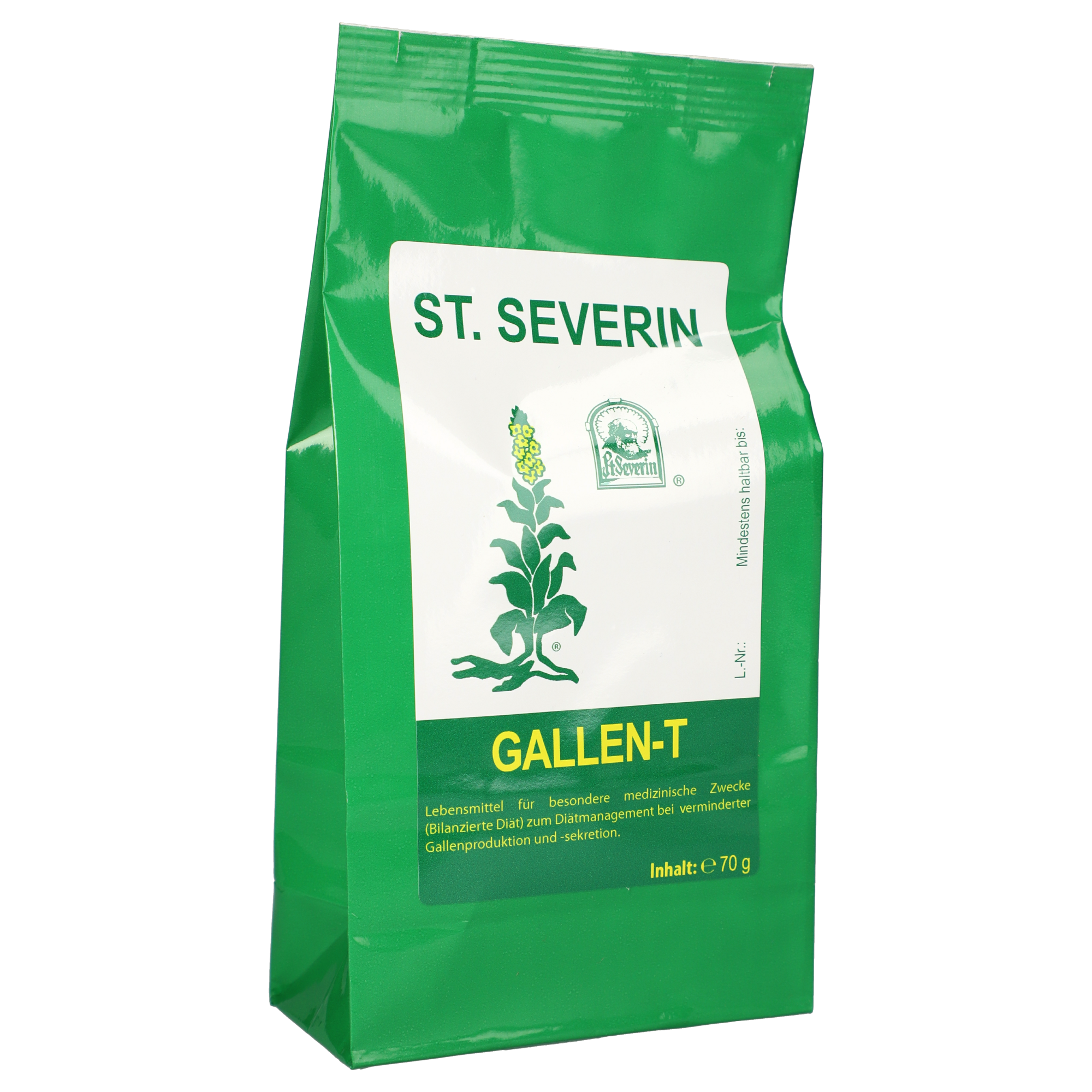 Gallen-T St. Severin ist ein Lebensmittel für besondere medizinische Zwecke (Bilanzierte Diät) zum Diätmanagement bei verminderter Gallenproduktion und -sekretion. Eine verminderte Gallenproduktion bzw. -sekretion führt zu einer negativen Beeinflussung des Fettstoffwechsels und dyspeptischen Beschwerden. Abhilfe können hier vor allem bittere Pflanzen schaffen. Diese Bittermittel, auch Amara genannt, regen die Sekretion von Verdauungssäften, darunter auch die der Galle, an und fördern somit die Verdauung. Der Tee kann dazu beitragen, die Gallenbildung und den Gallenfluss zu fördern und krampfartige Beschwerden der Gallenblase und –wege zu lindern. Alle Bestandteile unterstützen die Normalisierung der Leber-Galle-Funktion und damit auch des Lipidstoffwechsels.