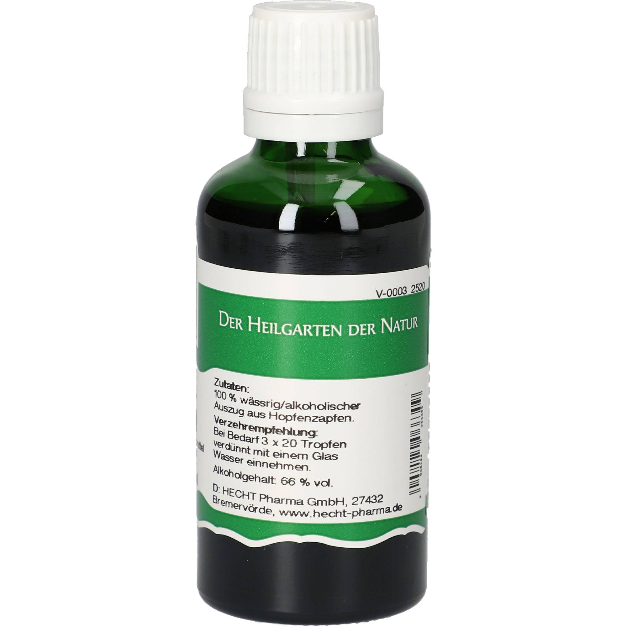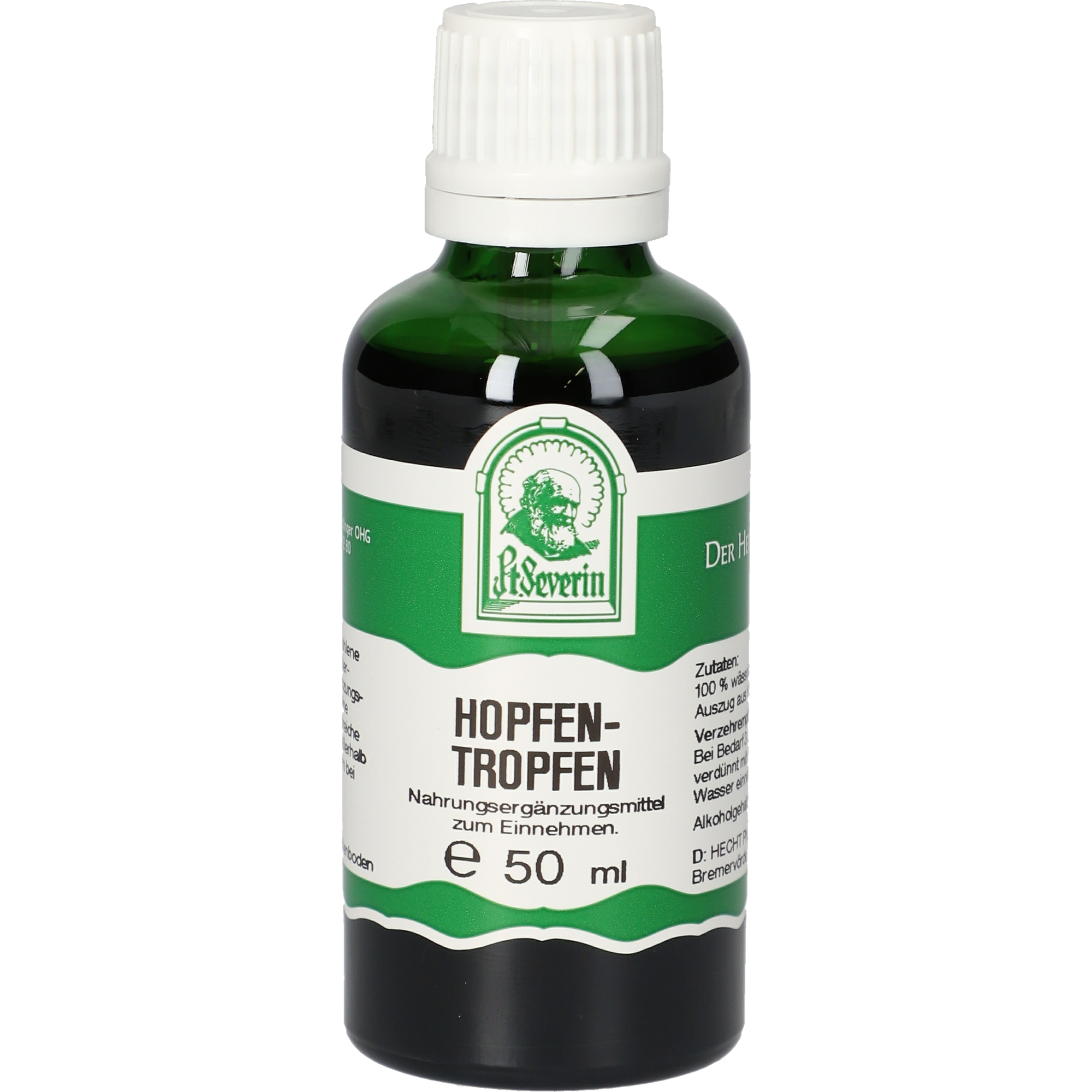 Hopfentropfen enthalten einen hochwertigen wässrig/alkoholischen Auszug aus Hopfenzapfen. Der Auszug wird nach Vorgaben des Arzneibuches im Verhältnis 1:5 hergestellt. Alkoholgehalt: 66 % Vol.