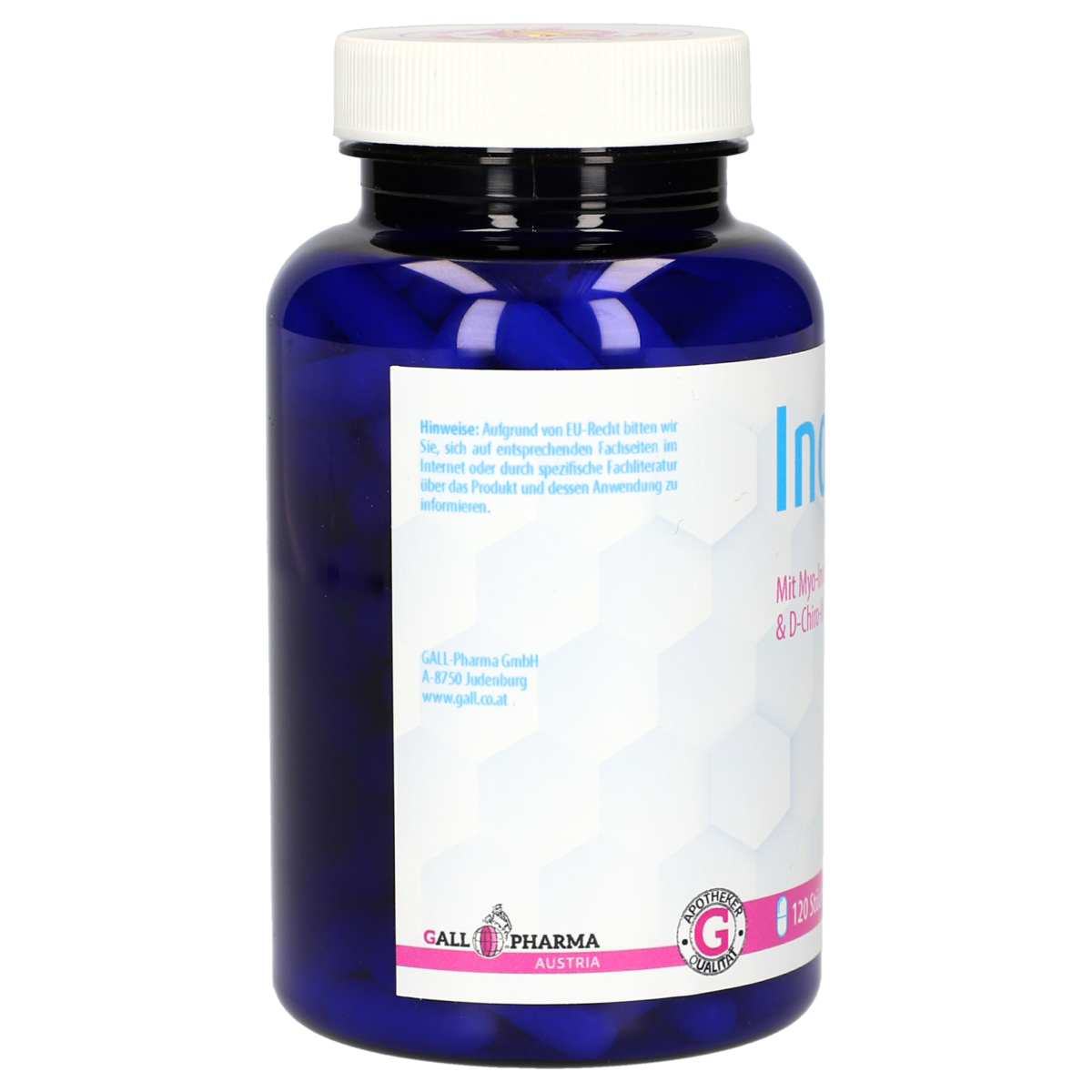 1 Stück enthält 483 mg Myo-Inositol, 12 mg D-Chiro-Inositol, 2,90 mg Vitamin B6 als P-5-P und 209 μg Folsäure als Quatrefolic®.