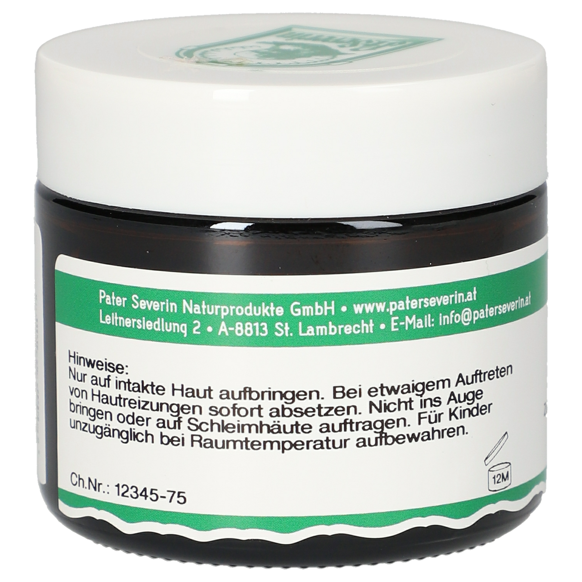 Die Kühlsalbe, auch Cold Cream, Kühlsalbe, Unguentum leniens, Walratsalbe oder Cérat de Galien genannt. Bei dieser lipophilen Salbe aus Bienenwachs und gehärtetem Erdnussöl bricht die Salbe durch Erwärmen auf der Haut, und das austretende Wasser verdunstet unter Energieaufnahme. Somit kommt es zu einem schwach kühlenden Effekt. Geschätzt wird die Kühlsalbe auch wegen ihrer sehr guten Verträglichkeit, da sie keine Emulgatoren und Konservierungsmittel enthält. Anwendung findet sie bei atopischer Dermatitis, Juckreiz, akuten bis subakuten Hauterkrankungen und zur Hautpflege. Ingredients: Arachidis Hypogaea Oil, Hydrogenated Peanut Oil, Aqua, Cera Alba, Ricinus Communis Seed Oil, Benzyl Alcohol Hinweise: Haltbarkeit nach Anbruch: 12 Monate. Nicht geeignet für Patienten mit Nussallergie! Nur auf intakte Haut aufbringen. Bei etwaigem Auftreten von Hautreizungen sofort absetzen. Nicht ins Auge bringen oder auf Schleimhäute auftragen. Für Kinder unzugänglich bei Raumtemperatur aufbewahren. Anwendung: Zum Einmassieren in die Haut.