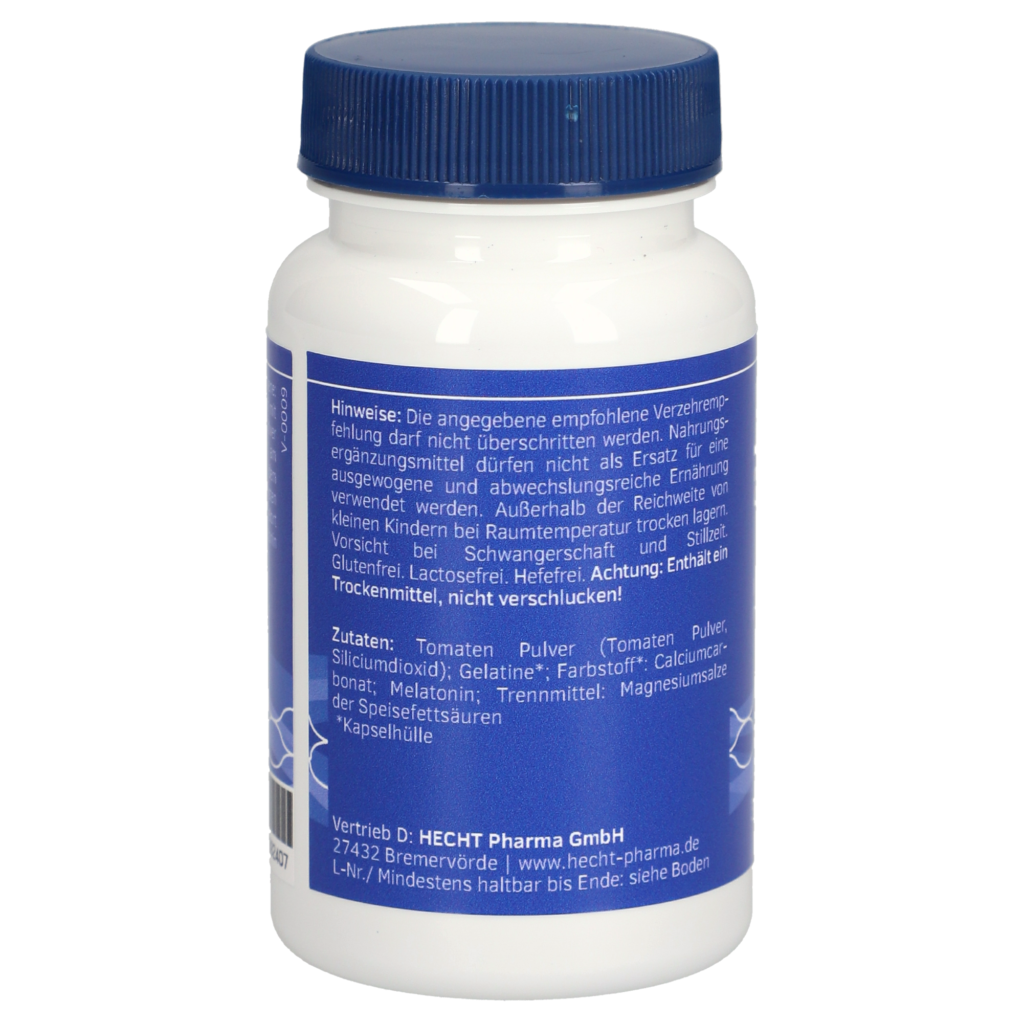 Tomaten Pulver (Tomaten Pulver, Siliciumdioxid); Gelatine*; Farbstoff*: Calciumcarbonat; Melatonin; Trennmittel: Magnesiumsalze der Speisefettsäuren
