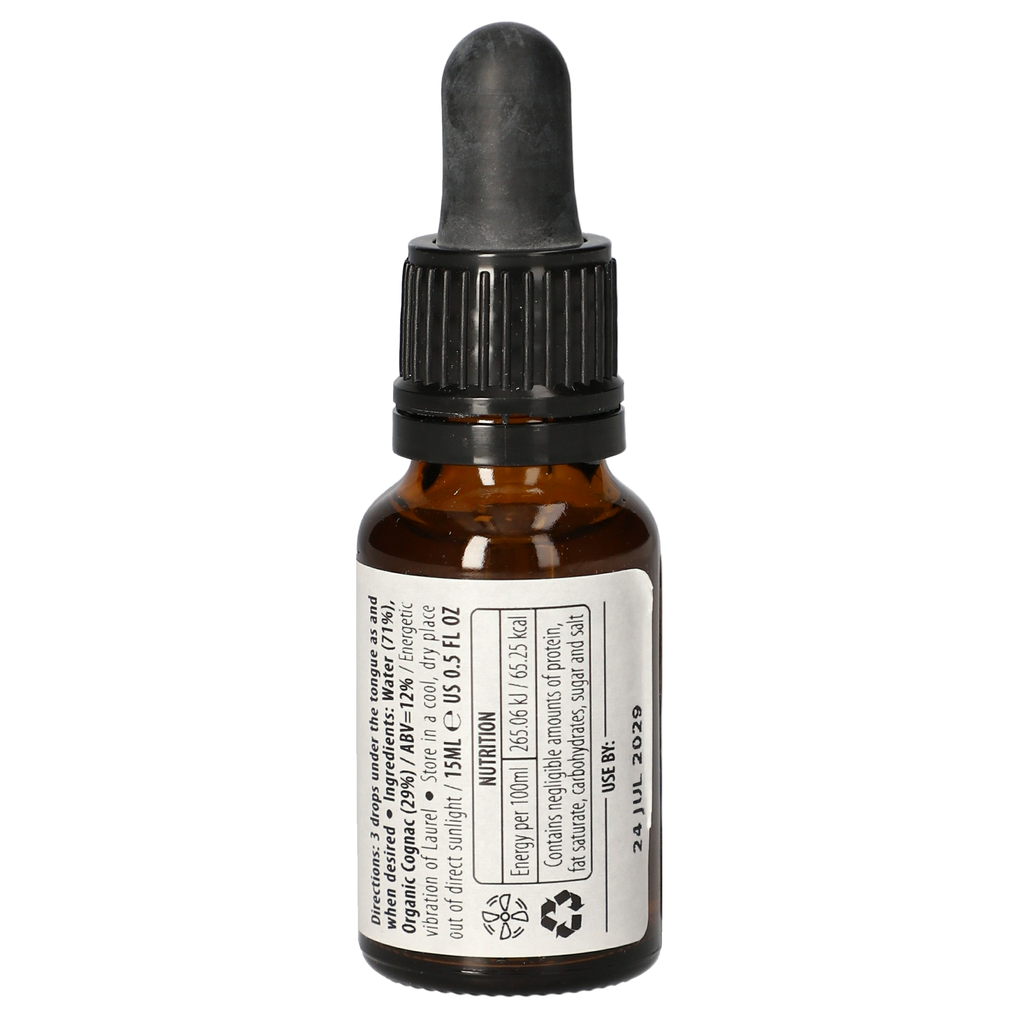 Wässriger Pflanzenextrakt Laurel, gereinigtes Wasser, Brandy.