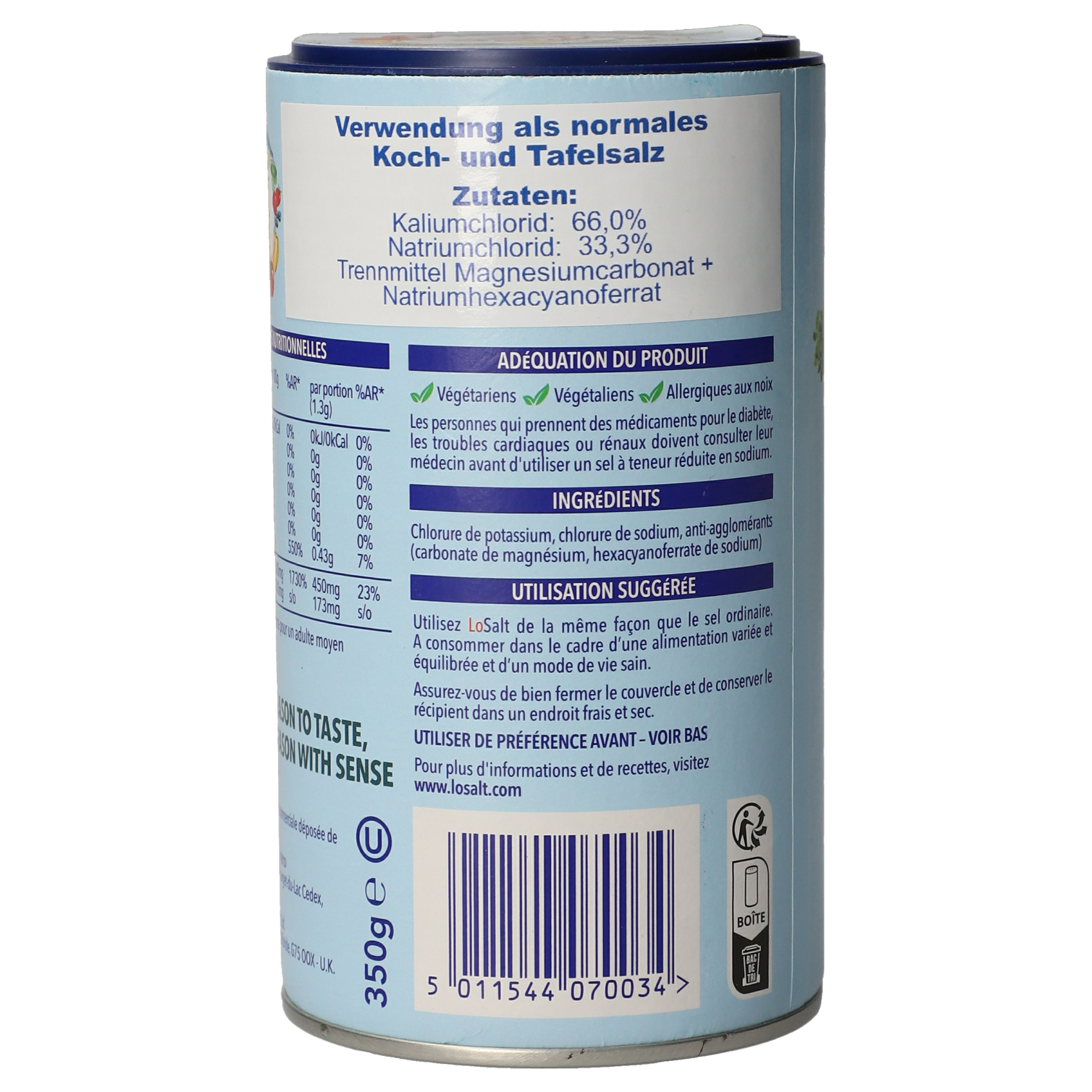 LoSalt ist ein natriumreduziertes Salz, das 66 % weniger Natrium enthält als herkömmliches Speise-, Meer- und Steinsalz, ohne dass der Geschmack darunter leidet. LoSalt wurde für Menschen entwickelt, die den Gebrauch von Salz reduzieren, aber auf Salz nicht verzichten möchten.