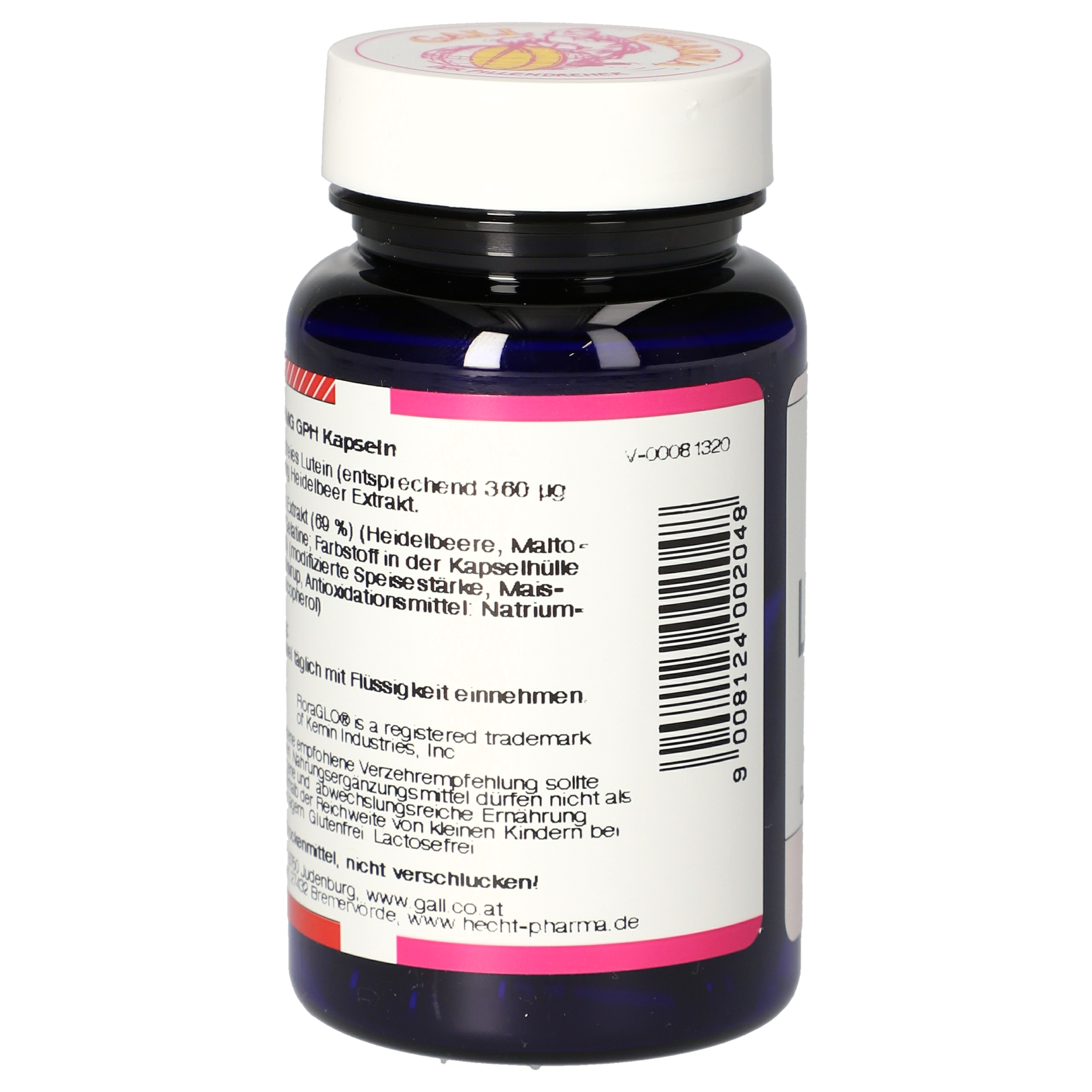 1 Kapsel enthält 6 mg freies Lutein (entsprechend 2,4 mg Zeaxanthin) und 350 mg Heidelbeer Extrakt.