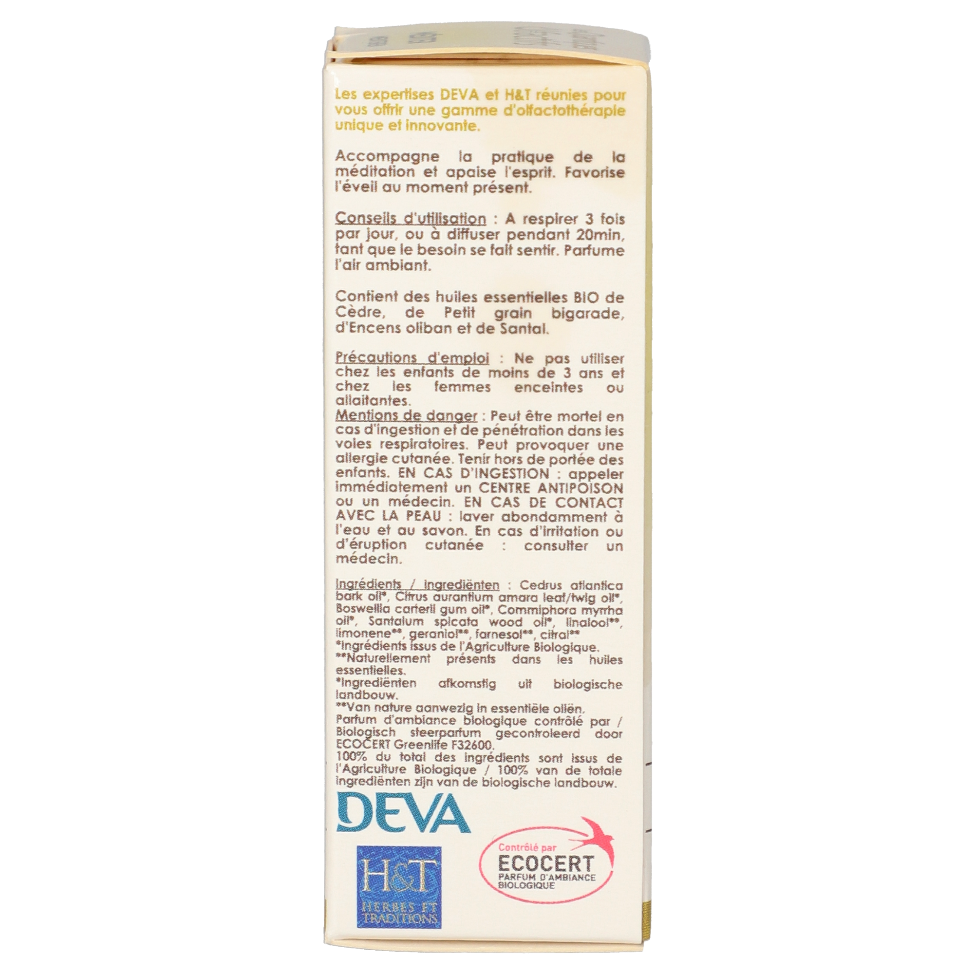 Biologischer Raumduft, enthält ätherische BIO Öle von Atlaszeder, Bitterorange, Weihrauch, Myrrhe, Sandelholz. Inhaltsstoffe sind natürlichen Ursprungs aus biologischem Anbau, kontrolliert von Ecocert Greenlife F32600