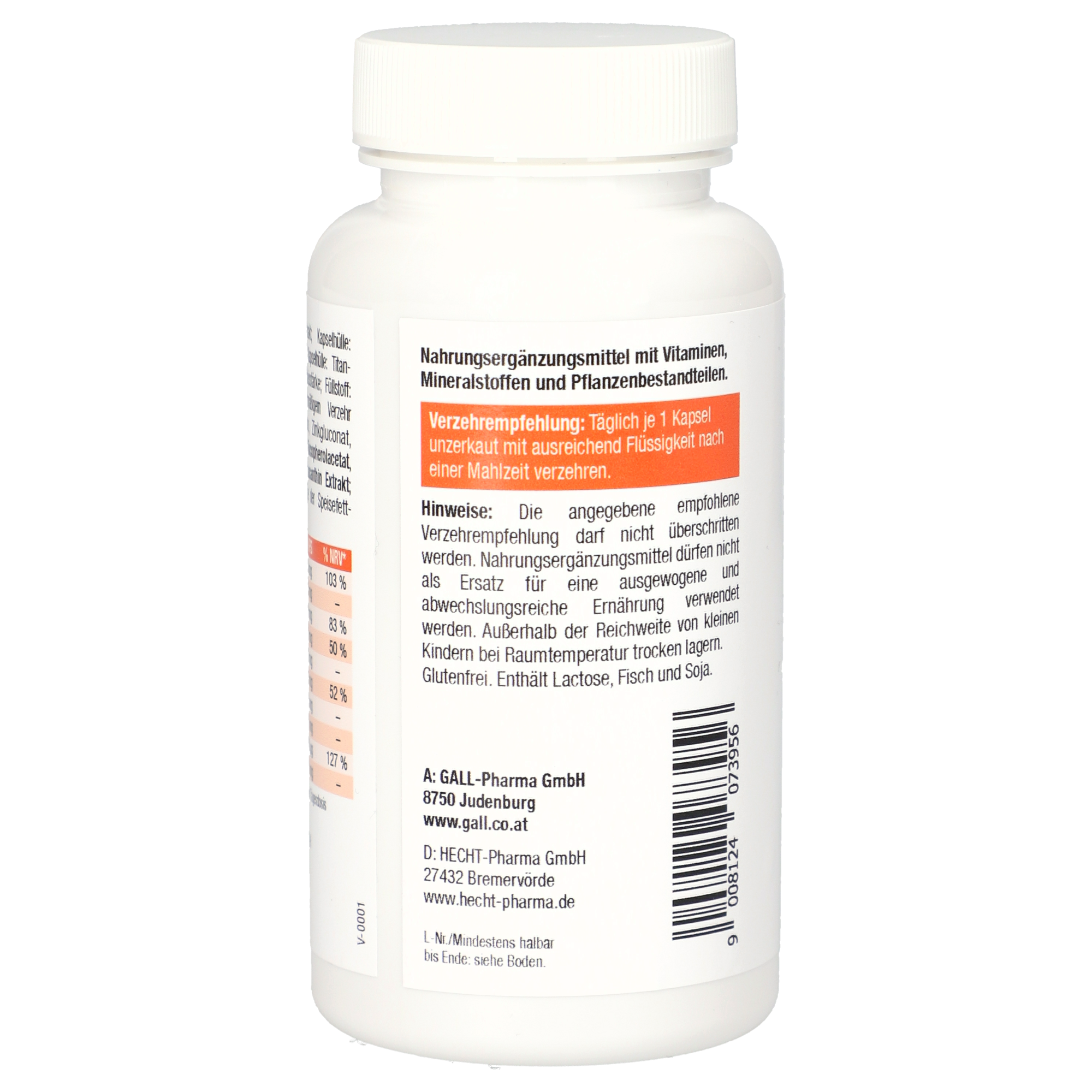 Die angegebene empfohlene Verzehrempfehlung darf nicht überschritten werden. Nahrungsergänzungsmittel dürfen nicht als Ersatz für eine ausgewogene und abwechslungsreiche Ernährung verwendet werden. Außerhalb der Reichweite von kleinen Kindern bei Raumtemperatur trocken lagern. Glutenfrei. Enthält Lactose, Fisch und Soja.