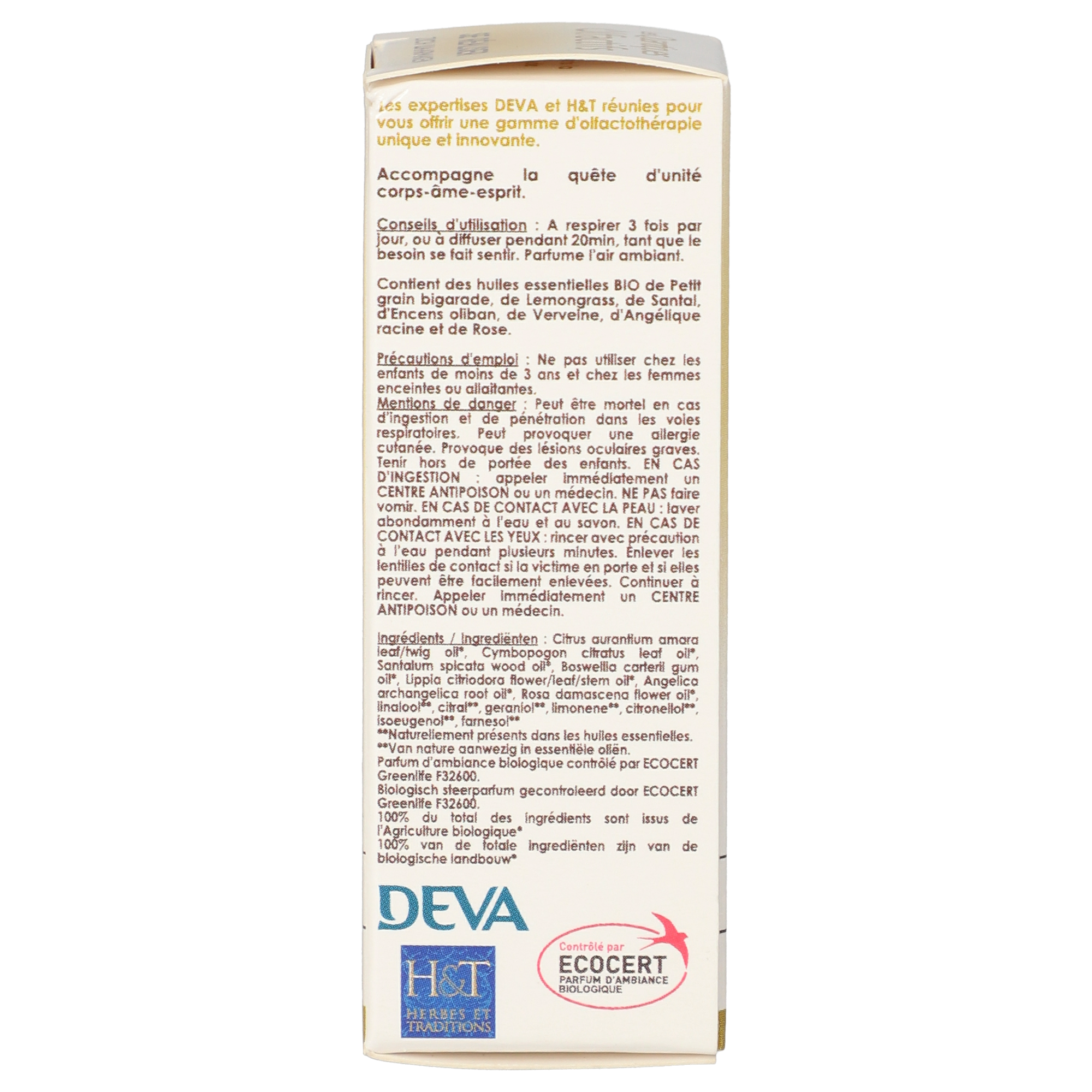 Biologischer Raumduft, enthält BIO ätherische Öle von Petit grain bigarade, Lemongrass, Sandelholz, Weihrauch, Eisenkraut, Angelikawurzel und Damaszener Rose. Inhaltsstoffe sind natürlichen Ursprungs aus biologischem Anbau, kontrolliert von Ecocert Greenlife F32600