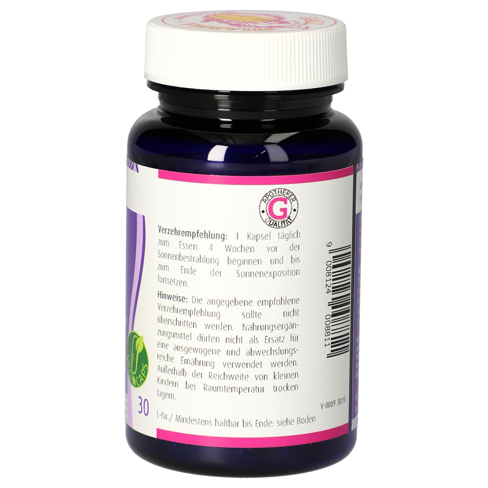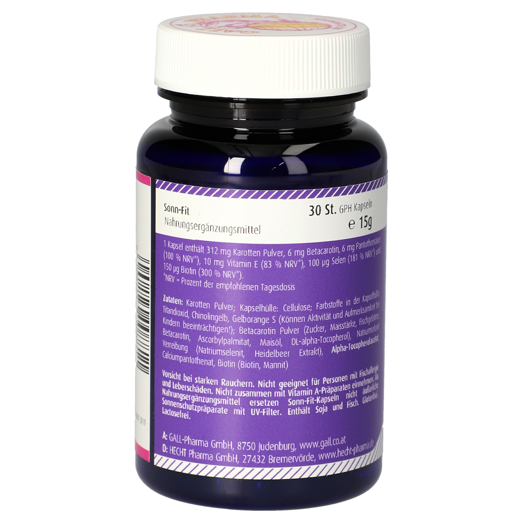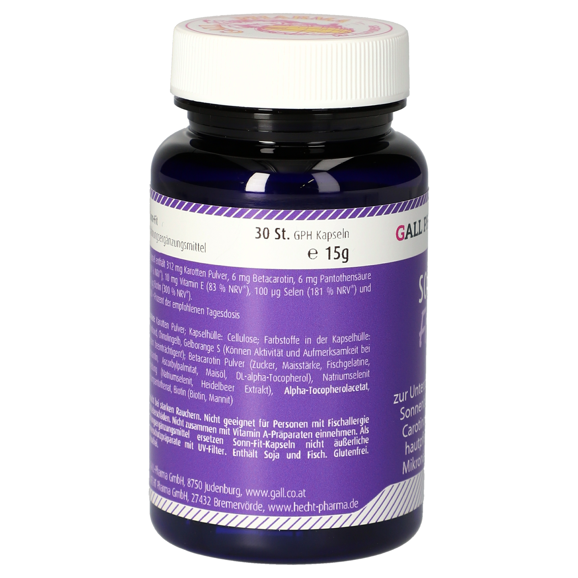 Die angegebene empfohlene Verzehrempfehlung darf nicht überschritten werden. Nahrungsergänzungsmittel dürfen nicht als Ersatz für eine ausgewogene und abwechslungsreiche Ernährung verwendet werden. Außerhalb der Reichweite von kleinen Kindern bei Raumtemperatur trocken lagern. Raucher sollten eine Dosierung von 20 mg, Schwangere von 9 mg und Stillende von 15 mg pro Tag nicht überschreiten. Nicht geeignet für Personen mit Leberschäden. Nicht zusammen mit Vitamin A-Präparaten einnehmen. Als Nahrungsergänzungsmittel ersetzen Sonn-Fit-Kapseln nicht äußerliche Sonnenschutzpräparate mit UV-Filter. Enthält Soja. Glutenfrei. Lactosefrei.