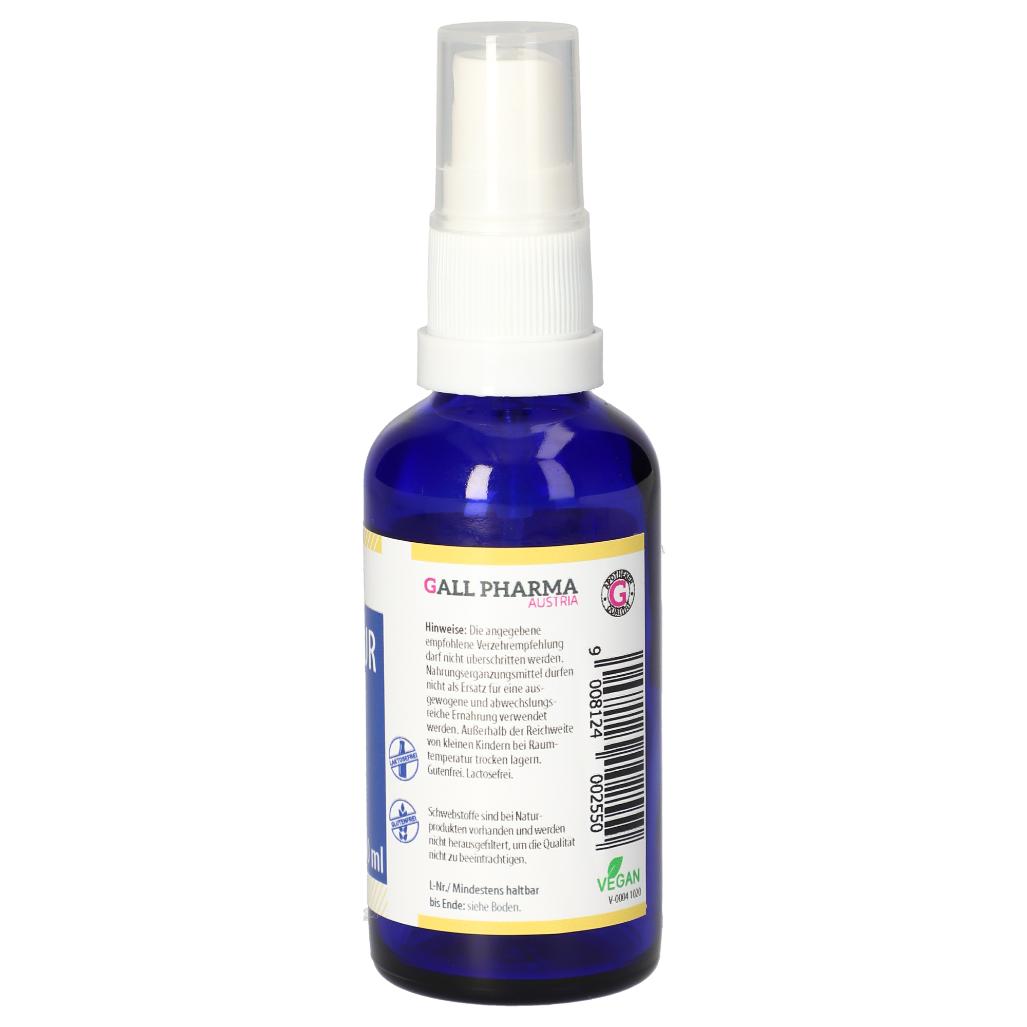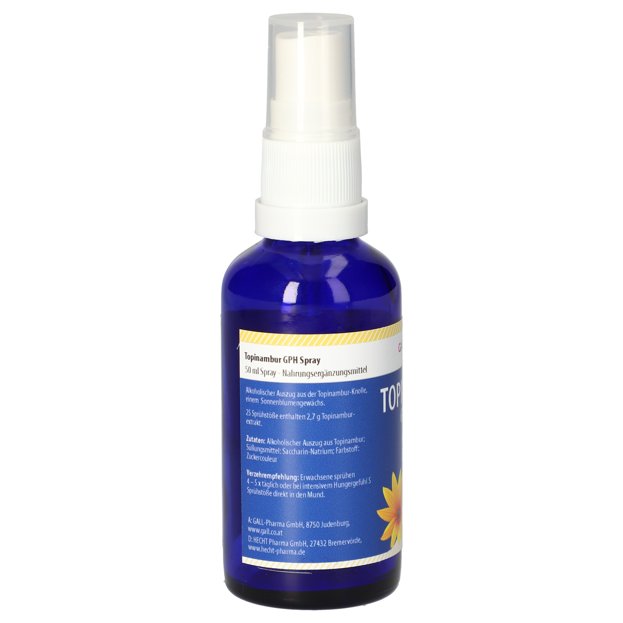 Topinambur Plus GPH Spray enthält den alkoholischen Auszug der Knollenfrucht. Topinambur (Helianthus tuberosus) stammt ursprünglich aus Mittel- und Nordamerika. Aufgrund seiner zahlreichen wertvollen Inhaltsstoffe, wie etwa der antioxidativen Polyphenole, ist die „Indianerknolle“ sehr widerstandsfähig gegen Fraßfeinde und schädliche Umwelteinflüsse; ein Effekt, der auch dem menschlichen Körper zu Gute kommt. Besonders bekannt ist Topinambur für seinen hohen Gehalt an Inulin. In Verbindung mit Wasser quillt dieser unverdaubare Mehrfachzucker im Magen auf und hinterlässt so ein rasches Sättigungsgefühl, weshalb eine Einnahme von Topinambur Schlankheitskuren ideal ergänzt. Diese Zuckerverbindung passiert den Dünndarm unversehrt und wird erst im Dickdarm abgebaut. Das präbiotische Wintergemüse aktiviert somit erst im Dickdarm das Wachstum nützlicher Darmbakterien wie Lacto- und Bifidobakterien und pflegt somit die Darmflora. Topinambur hat überdies nicht zu Unrecht den Beinamen „Diabetikerknolle“. Denn besonders Personen, für die Blutzucker ein Thema ist, profitieren von dem Verzehr dieser wertvollen Knolle. Da Inulin, der langkettige Zuckerstoff, nicht verdaut werden kann, da die dafür nötigen Enzyme im menschlichen Körper fehlen, hat ein Verzehr keine Auswirkungen auf den Blutzuckerspiegel. Chlorogen, ein weiterer wertvoller Pflanzenstoff, verhindert zusätzlich eine Zuckeraufnahme im Blut und verhindert zusammen mit Betain, Cholin und Saponinen unkontrolliertes schädliches Zellwachstum. Topinambur ist reich an Vitaminen und Mineralstoffen, vor allem aber an Kalium. Topinambur GPH Plus Spray enthält zusätzlich den Inhaltsstoff Cholinchlorid. Cholin trägt zu einem normalen Homocystein-Stoffwechsel, zur Aufrechterhaltung einer normalen Leberfunktion und zu einem normalen Fettstoffwechsel bei. Chlorid trägt durch die Produktion von Salzsäure im Magen zu einer normalen Verdauung bei.Anwendungsgebiete: Zur Gewichtskontrolle Wohltuend für den Darm Präbiotikum Verzehrempfehlung:Erwachsene: 4-5 Mal täglich, bevorzugt vor den Mahlzeiten, direkt in den Mund sprühen.25 Sprühstöße enthalten 2,05 g Topinambur-Extrakt, 0,21 g L-Carnitin, 0,04 g Cholinchlorid und 0,04 g Myo-Inositol.Zusammensetzung:Alkoholischer Auszug aus Topinambur, L-Carnitin, Wasser, Cholinchlorid, Myo-Inositol; Süßungsmittel: Saccharin-Natrium; Farbstoff: ZuckercouleurHinweise:Die angegebene empfohlene Verzehrempfehlung darf nicht überschritten werden. Nahrungsergänzungsmittel dürfen nicht als Ersatz für eine ausgewogene und abwechslungsreiche Ernährung verwendet werden. Außerhalb der Reichweite von kleinen Kindern bei Raumtemperatur trocken lagern. Glutenfrei. Lactosefrei. Alkoholgehalt: 30 %