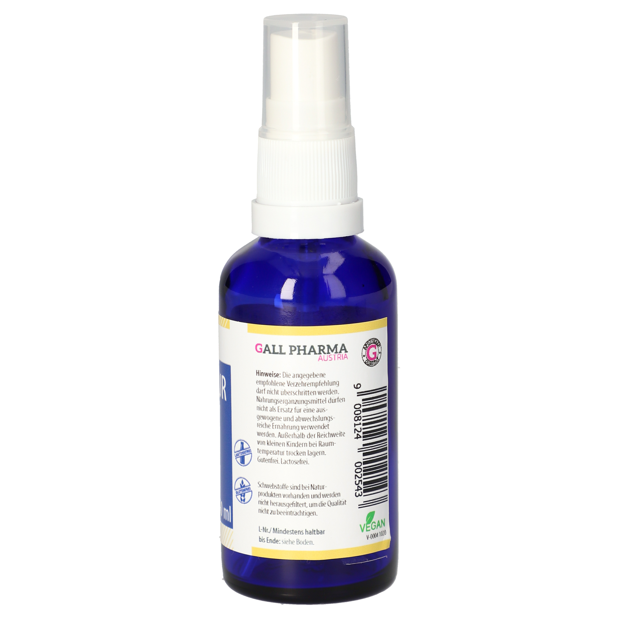 Topinambur Plus GPH Spray enthält den alkoholischen Auszug der Knollenfrucht. Topinambur (Helianthus tuberosus) stammt ursprünglich aus Mittel- und Nordamerika. Aufgrund seiner zahlreichen wertvollen Inhaltsstoffe, wie etwa der antioxidativen Polyphenole, ist die „Indianerknolle“ sehr widerstandsfähig gegen Fraßfeinde und schädliche Umwelteinflüsse; ein Effekt, der auch dem menschlichen Körper zu Gute kommt. Besonders bekannt ist Topinambur für seinen hohen Gehalt an Inulin. In Verbindung mit Wasser quillt dieser unverdaubare Mehrfachzucker im Magen auf und hinterlässt so ein rasches Sättigungsgefühl, weshalb eine Einnahme von Topinambur Schlankheitskuren ideal ergänzt. Diese Zuckerverbindung passiert den Dünndarm unversehrt und wird erst im Dickdarm abgebaut. Das präbiotische Wintergemüse aktiviert somit erst im Dickdarm das Wachstum nützlicher Darmbakterien wie Lacto- und Bifidobakterien und pflegt somit die Darmflora. Topinambur hat überdies nicht zu Unrecht den Beinamen „Diabetikerknolle“. Denn besonders Personen, für die Blutzucker ein Thema ist, profitieren von dem Verzehr dieser wertvollen Knolle. Da Inulin, der langkettige Zuckerstoff, nicht verdaut werden kann, da die dafür nötigen Enzyme im menschlichen Körper fehlen, hat ein Verzehr keine Auswirkungen auf den Blutzuckerspiegel. Chlorogen, ein weiterer wertvoller Pflanzenstoff, verhindert zusätzlich eine Zuckeraufnahme im Blut und verhindert zusammen mit Betain, Cholin und Saponinen unkontrolliertes schädliches Zellwachstum. Topinambur ist reich an Vitaminen und Mineralstoffen, vor allem aber an Kalium. Topinambur GPH Plus Spray enthält zusätzlich den Inhaltsstoff Cholinchlorid. Cholin trägt zu einem normalen Homocystein-Stoffwechsel, zur Aufrechterhaltung einer normalen Leberfunktion und zu einem normalen Fettstoffwechsel bei. Chlorid trägt durch die Produktion von Salzsäure im Magen zu einer normalen Verdauung bei.