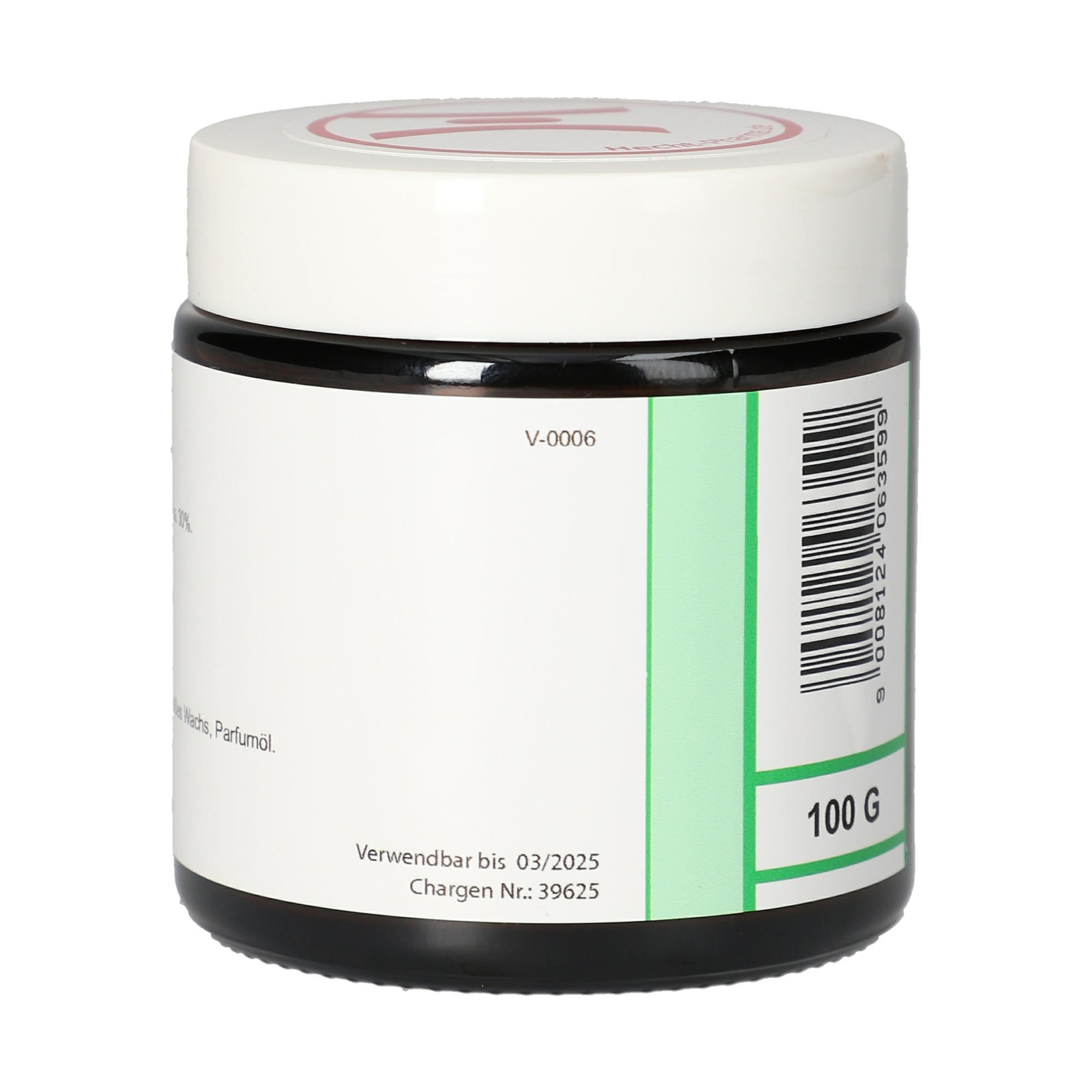 Vaseline weiß, gereinigtes Wasser, dickflüssiges Paraffin, Dehymuls E, Glycerin, weißes Wachs, Parfümöl.