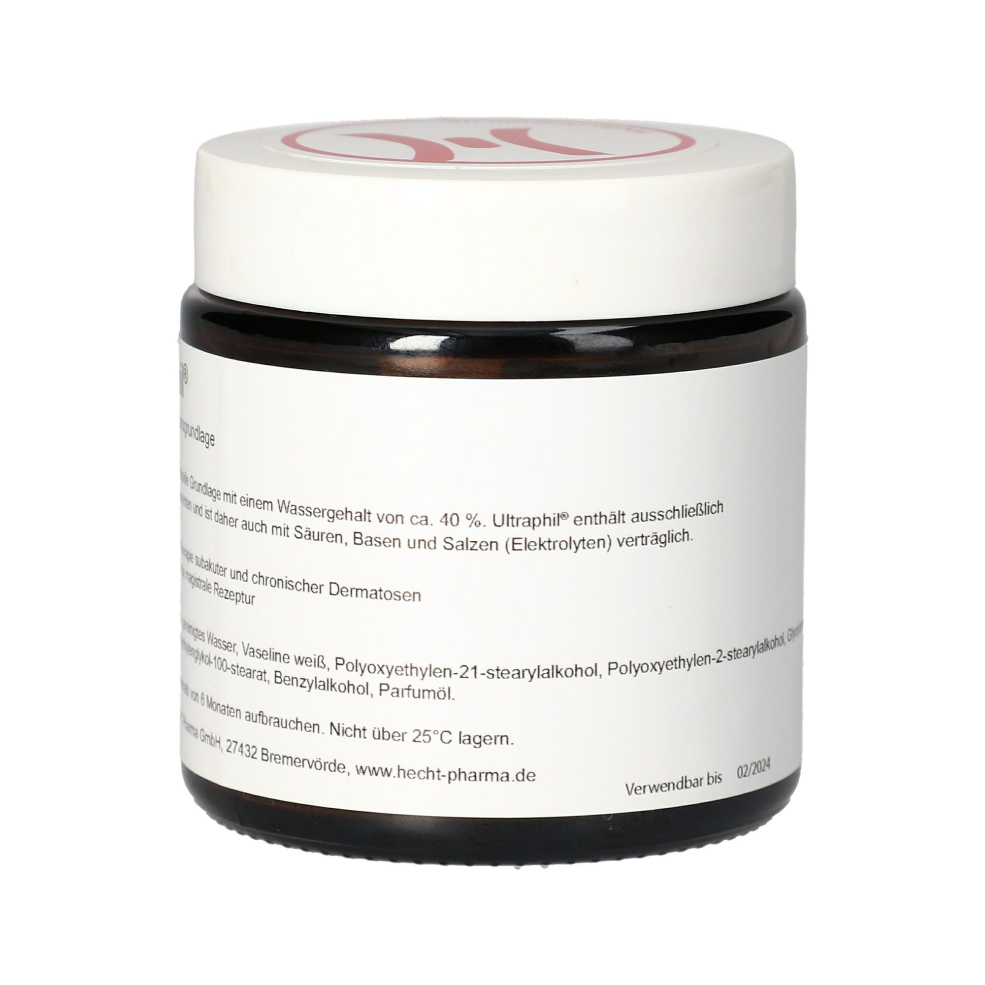 Ultrabas® ist eine halbfeste Wasser-in-Öl-Emulsionssalbe mit einem Wassergehalt von ca. 30 %. Es handelt sich dabei um eine lipophile Salbe, die ohne Konservierungsmittel oder Wollwachse auskommt. Durch die regelmäßige Anwendung der Pflegesalbe wird raue und schuppige Haut geglättet und trockene Haut erscheint wieder ebenmäßig. Außerdem wird das Austrocknen der Haut reduziert, wodurch Irritationen und Reizungen vermieden werden können. Die Herstellung erfolgt nach den GMP Richtlinien für pharmazeutische Produkte. Anwendungsgebiete: Verbessert die Elastizität der Haut Versorgt die Haut mit ausreichend Feuchtigkeit Lindert Trockenheit und Irritationen Als Salbengrundlage für Eigenherstellungen Verzehrempfehlung: Zur Pflege bei irritierter, geröteter, juckender und schuppiger Haut. Anwendung: Vaseline weiß, gereinigtes Wasser, dickflüssiges Paraffin, Dehymuls E, Glycerin, weißes Wachs, Parfümöl. Hinweise: Bei etwaigem Auftreten von Hautreizungen sofort absetzen. Nicht ins Auge bringen oder auf Schleimhäute auftragen. Für Kinder unzugänglich aufbewahren. Nach dem Öffnen innerhalb von 6 Monaten aufbrauchen. Nicht über 25°C lagern.