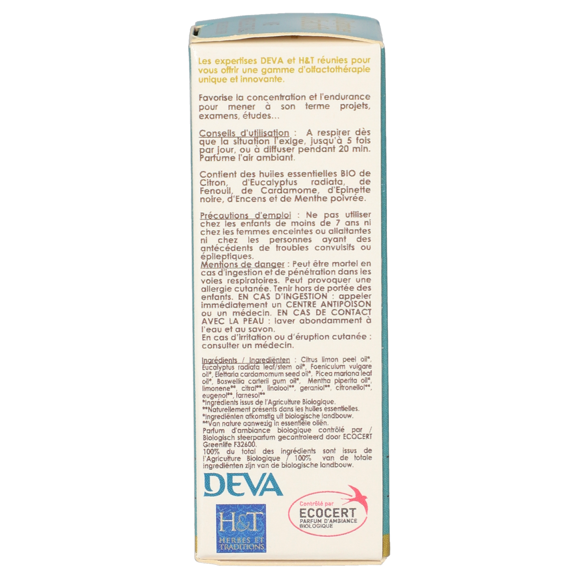 Biologischer Raumduft, enthält ätherische BIO Öle von Zitrone, Eukalyptus radiata, Fenchel, Kardamom, Schwarzfichte, Weihrauch und Pfefferminze. Inhaltsstoffe sind natürlichen Ursprungs aus biologischem Anbau, kontrolliert von Ecocert Greenlife F32600