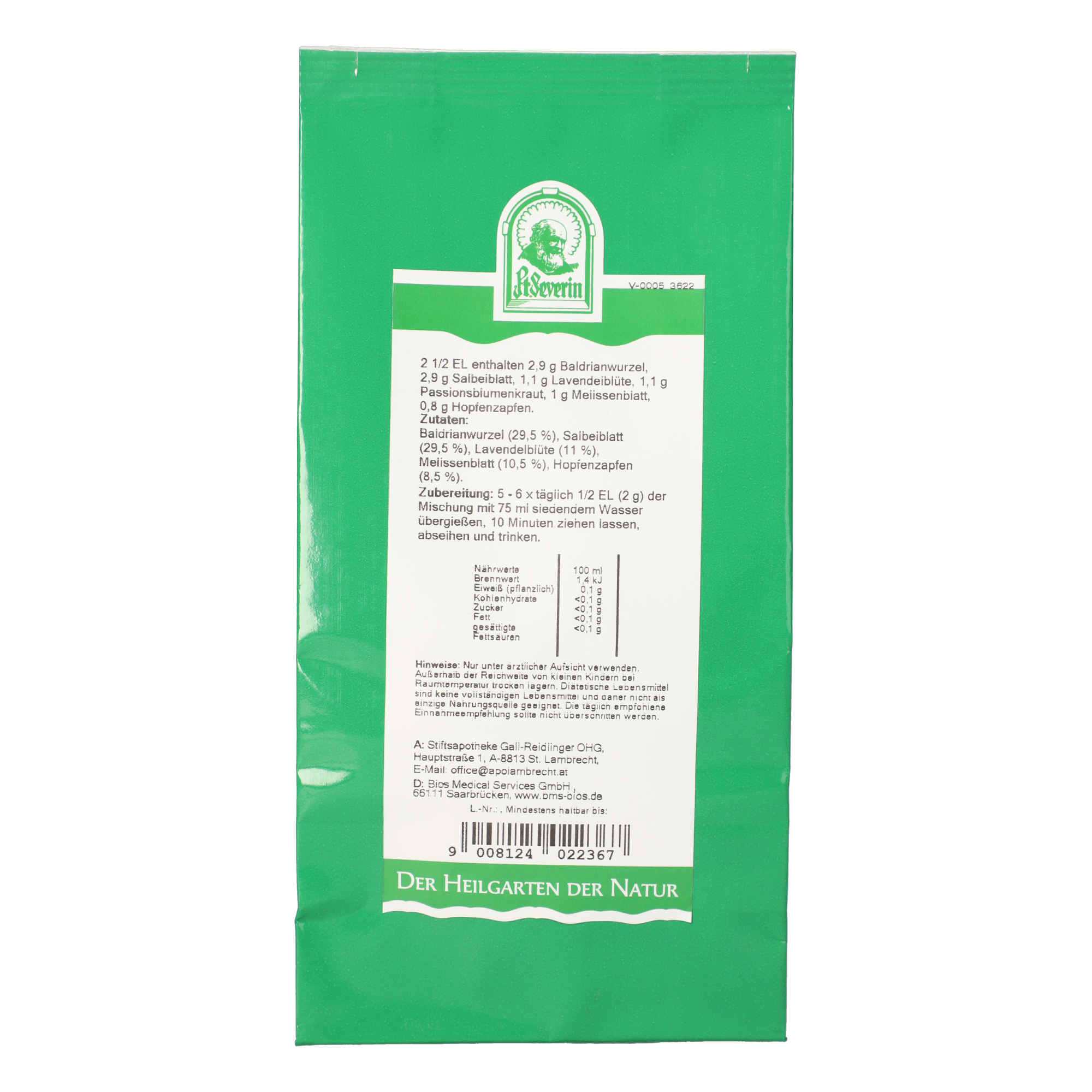 Baldrianwurzel, Salbeiblatt, Lavendelblüte, Passionsblumenkraut, Melissenblatt und Hopfenzapfen.