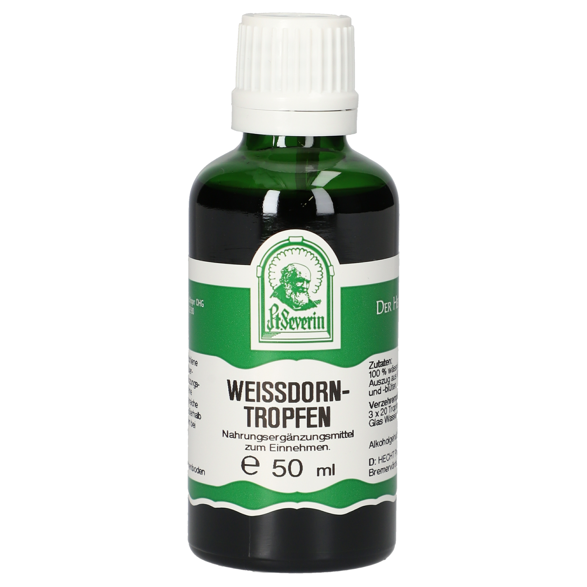 Weißdorntropfen enthalten einen hochwertigen wässrig/alkoholischen Auszug aus Weißdornblätter und -blüten. Der Auszug wird nach Vorgaben des Arzneibuches im Verhältnis 1:5 hergestellt. Alkoholgehalt: 66 % Vol.