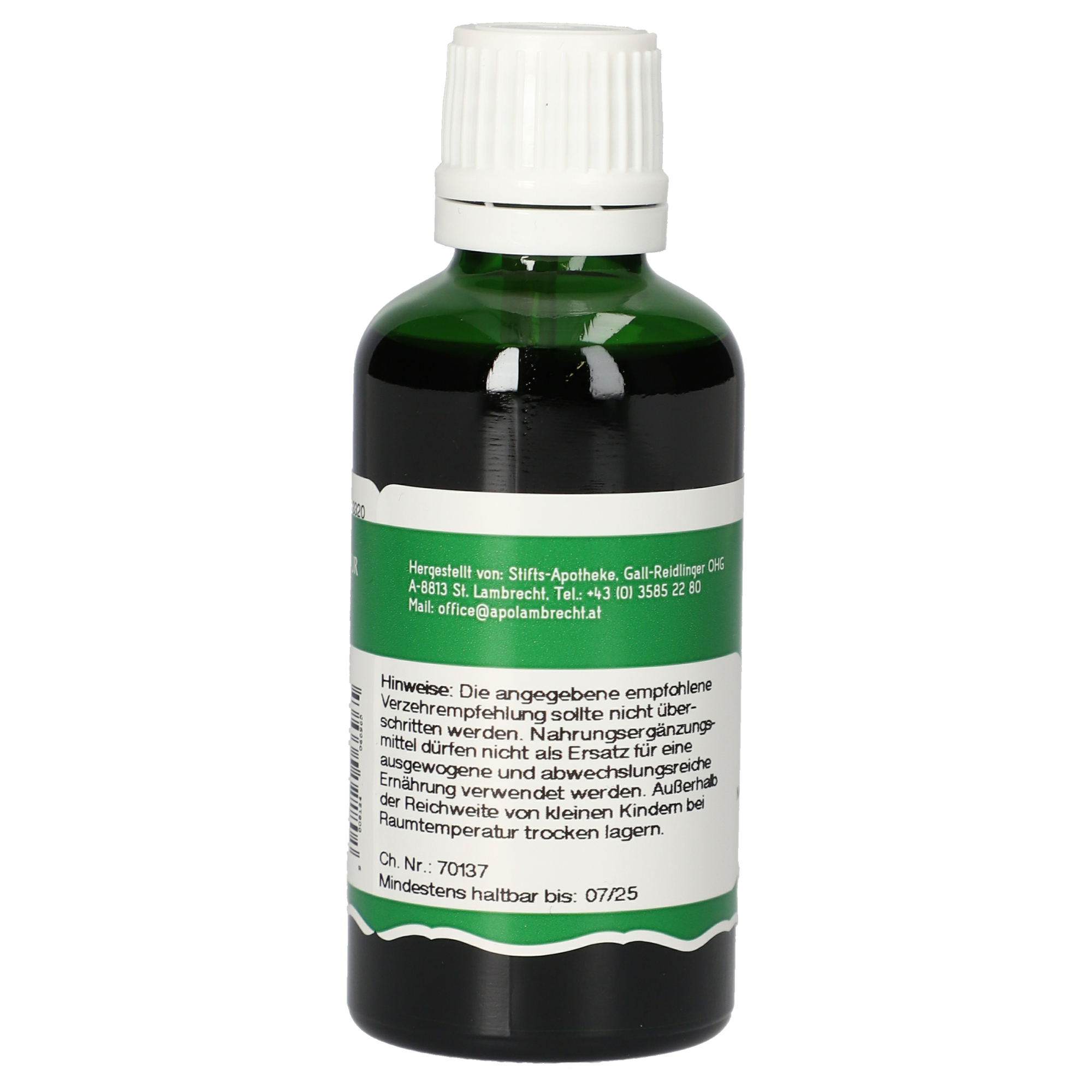 Ginseng (Panax ginseng C. A. Meyer, Synonym: Korea Ginseng, „Menschenwurzel“) zählt zu den Araliengewächsen (Araliaceae). Inhaltsstoffe sind die Ginsenoside, Fettsäuren, Enzyme, aminosäureähnliche Verbindungen, Vitamine A, B1, B2, C, ein wenig ätherisches Öl, Mineralien und Spurenelemente. Ginseng wird nachgesagt, dass es die Aktivität des Zentralen Nervensystems stimuliert und die Konzentration und Aufmerksamkeit anregen kann. Die Wurzel hat positive Effekte auf das Immunsystem, weshalb es zu einer Erhöhung der Belastbarkeit und vermehrten Stressresistenz kommt. Zusammensetzung: Ginsengtropfen enthalten einen hochwertigen wässrig/alkoholischen Auszug aus Ginsengwurzel, hergestellt laut Arzneibuch. Alkoholgehalt: 66 % Vol. Hinweise: Die angegebene empfohlene Verzehrempfehlung darf nicht überschritten werden. Nahrungsergänzungsmittel dürfen nicht als Ersatz für eine ausgewogene und abwechslungsreiche Ernährung verwendet werden. Außerhalb der Reichweite von kleinen Kindern bei Raumtemperatur trocken lagern. Verzehrempfehlung: Bei Bedarf 2 - 3 x 30 Tropfen verdünnt mit einem Glas Wasser einnehmen.